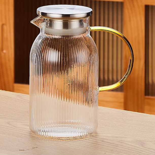 fully golden lid vertical stripes water pitcher 1200ml