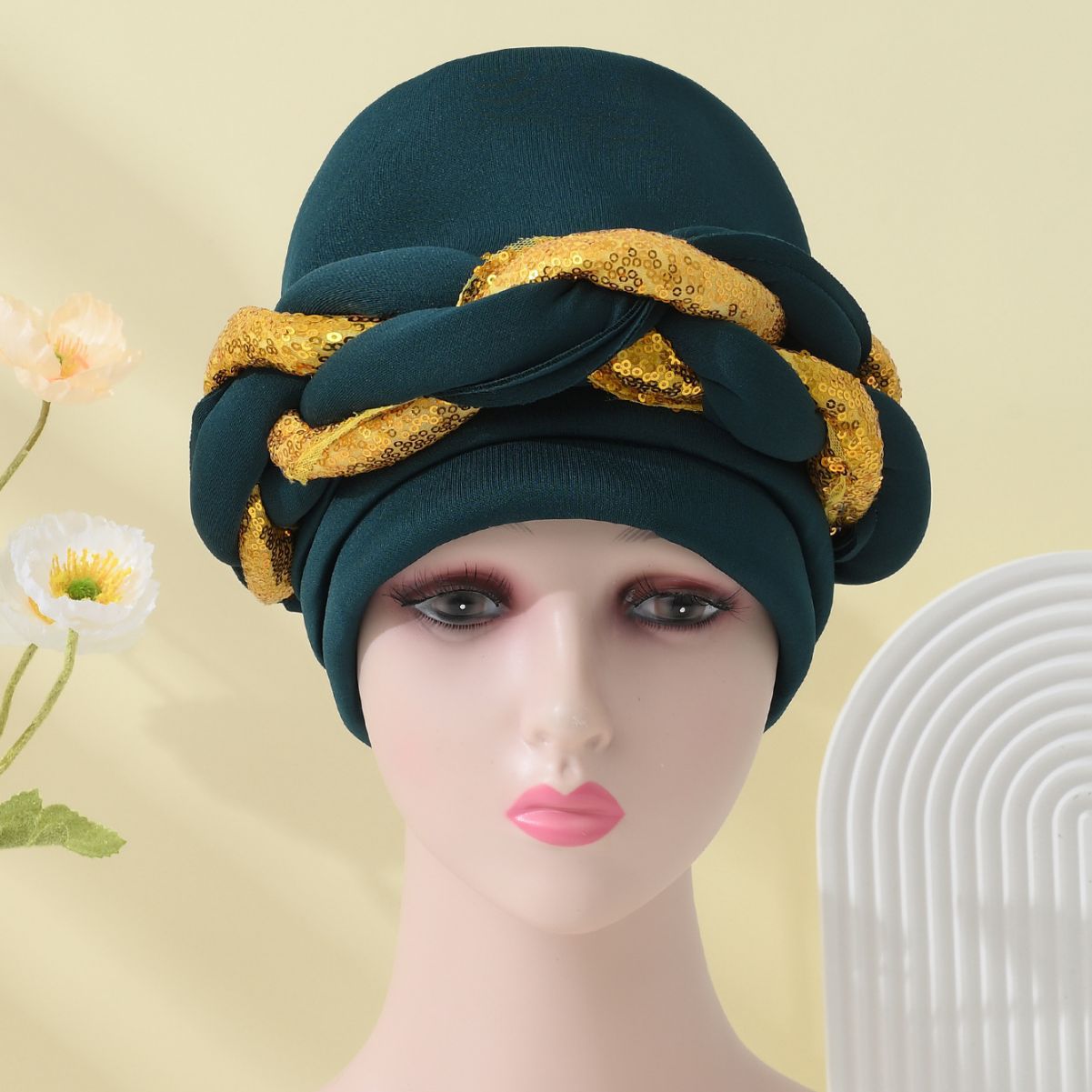 Cross-border Amazon new space layer sequins braid hat elastic headband African women's hats outdoor hair hats, material: polyester, weight: 130g, specification: adult unisex, color: as shown in the picture