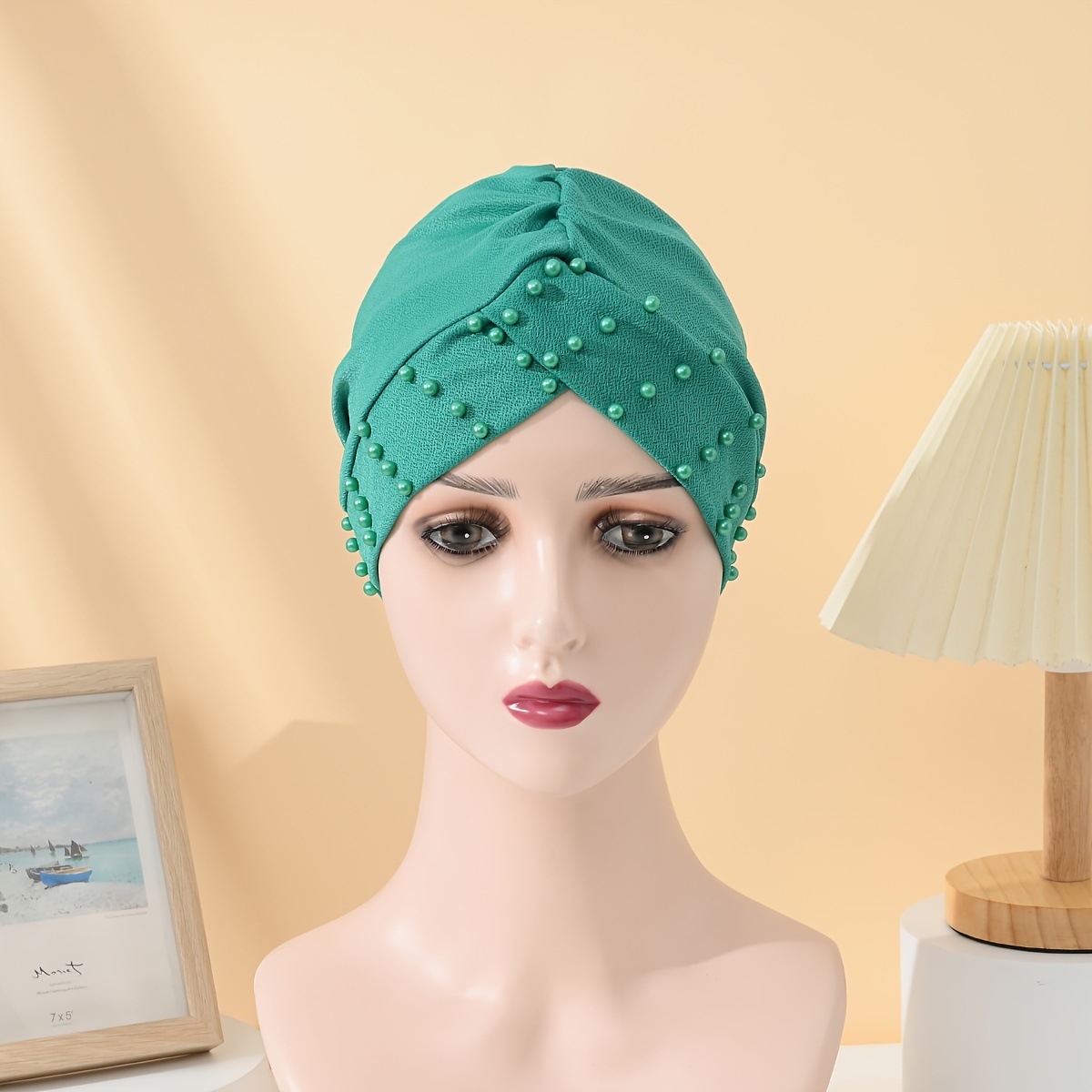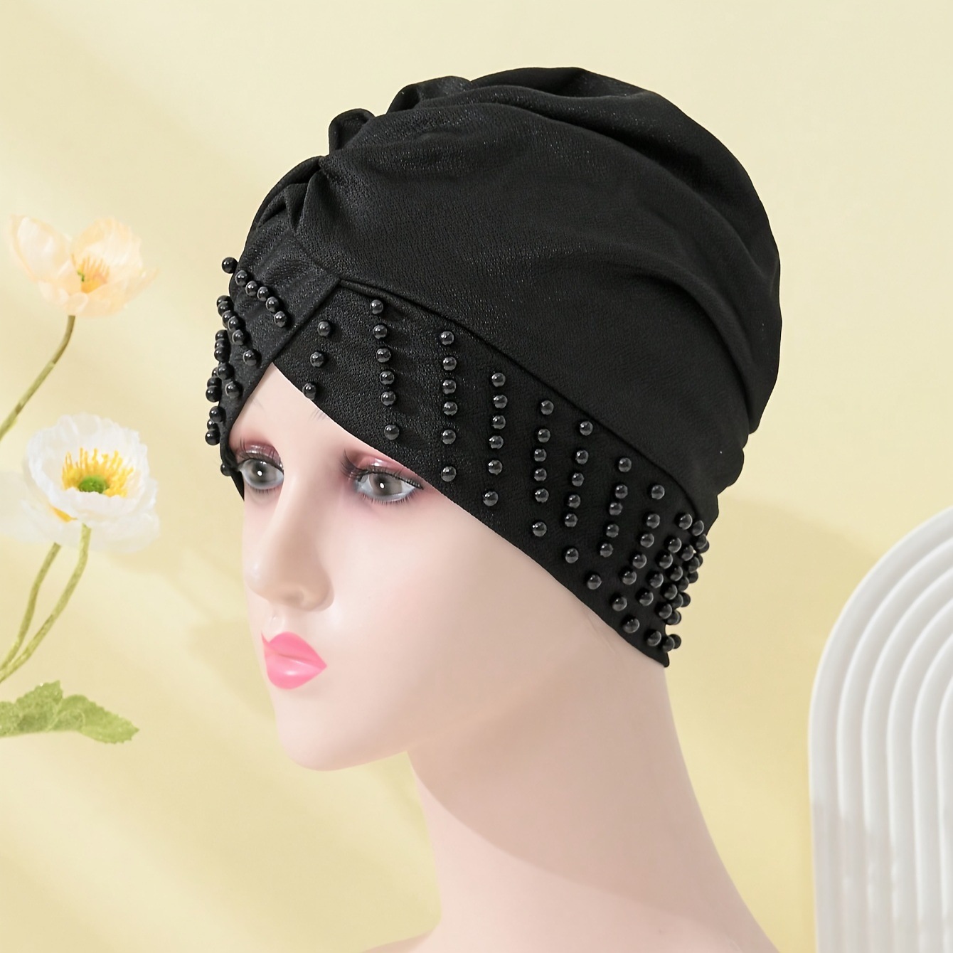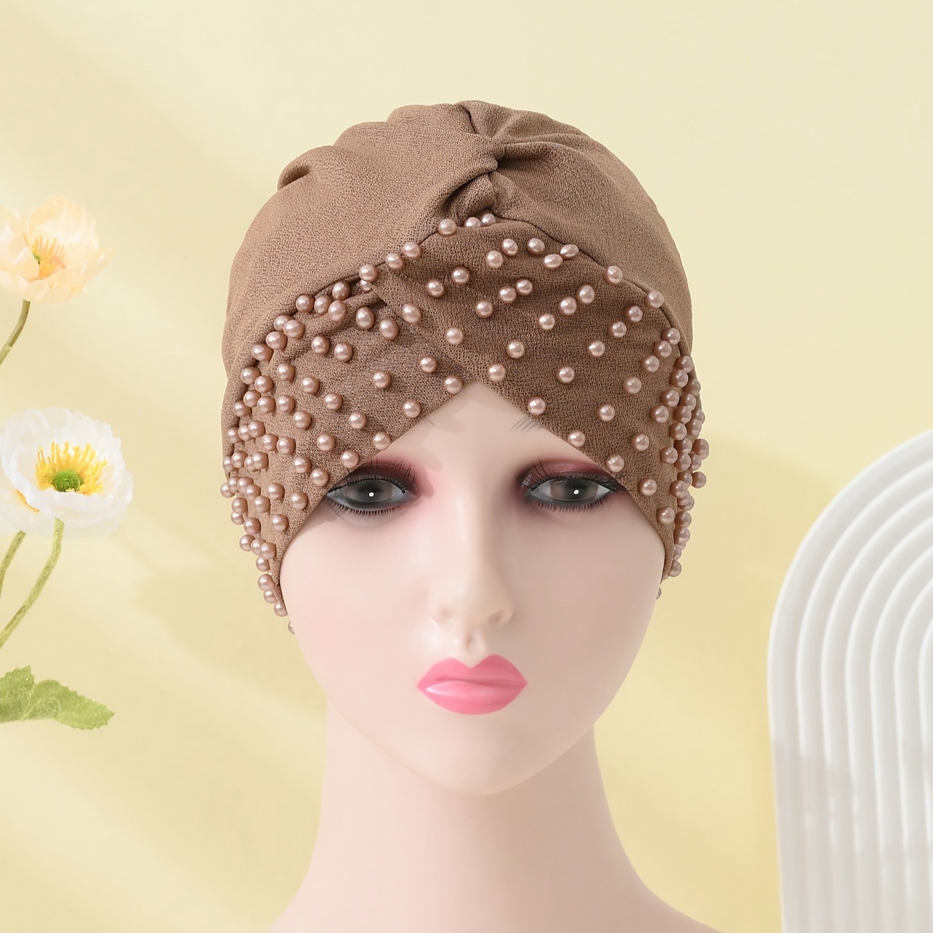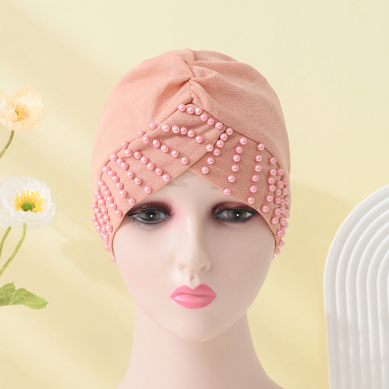 Factory Direct Sale: Popular New Models of Women's Pure Color Headbands with Pearl Clips and Muslim Scarves