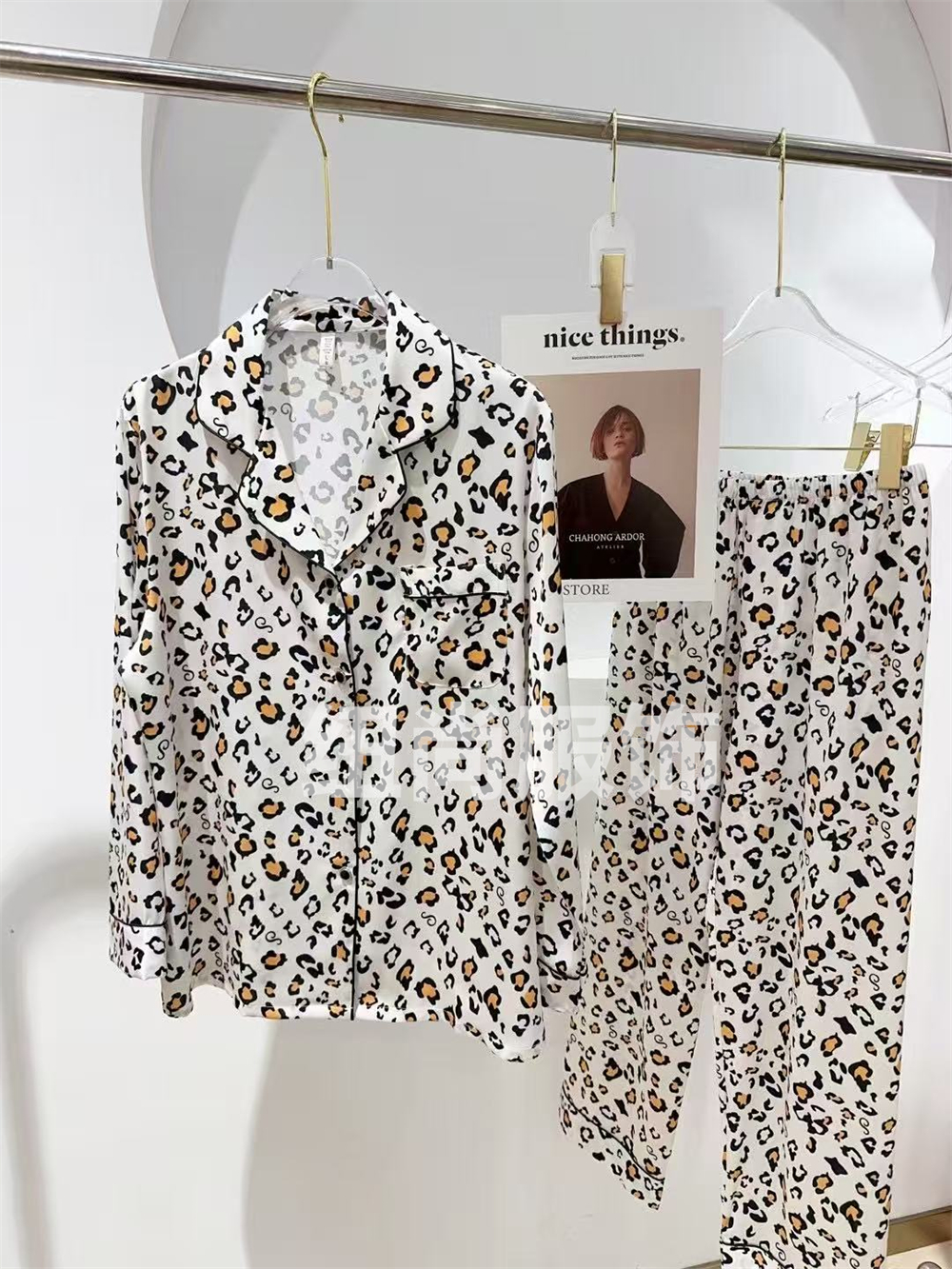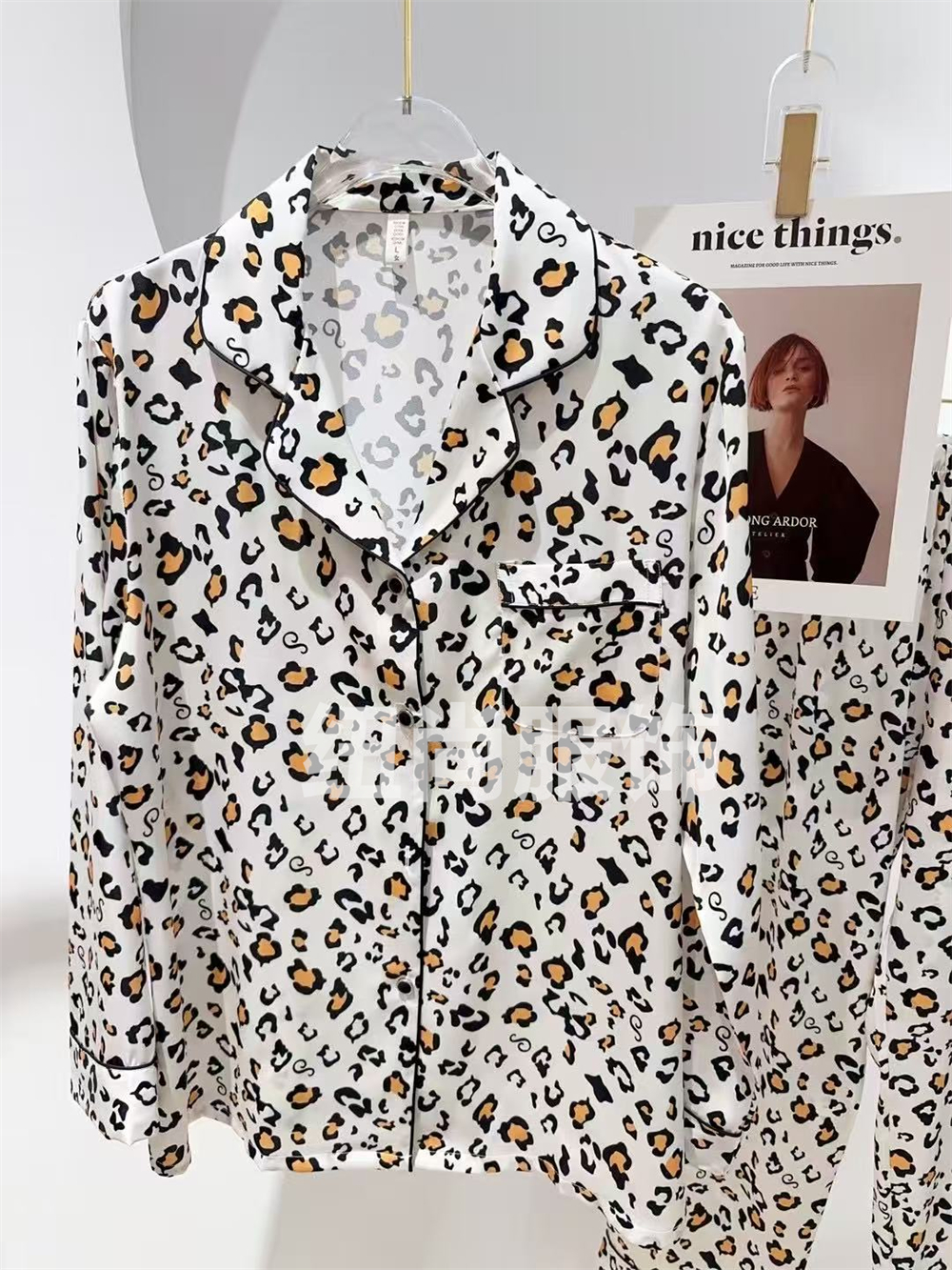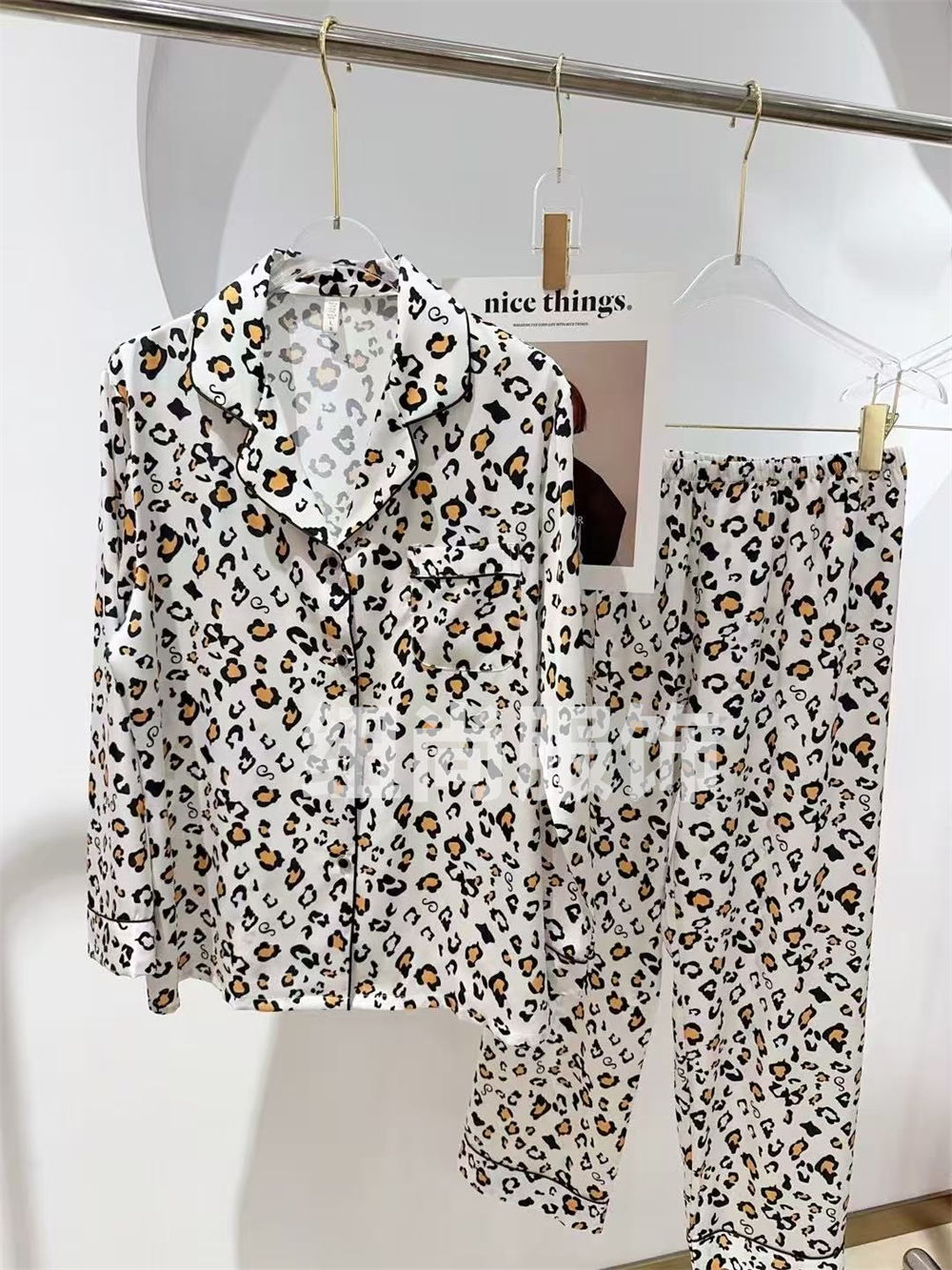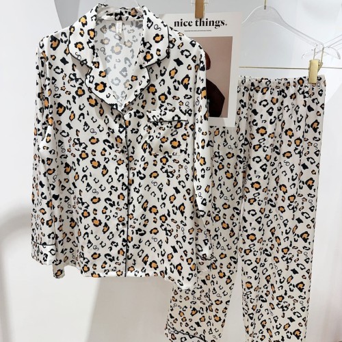 2025 pajamas suit women's long sleeve cute leopard print casual cardigan thin artificial silk homewear suit 中文版