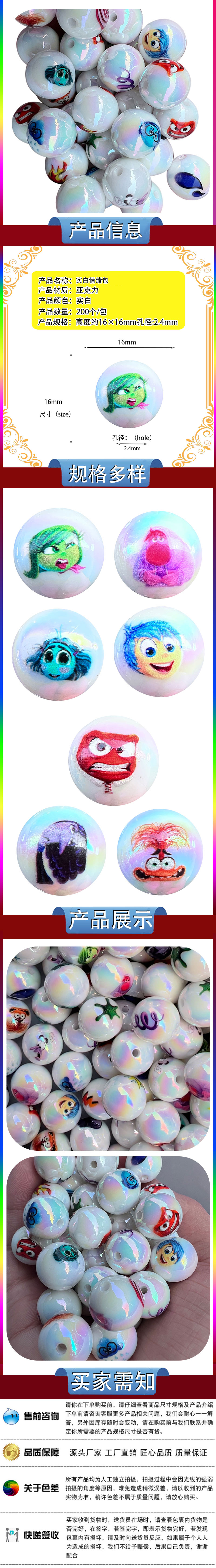 16mm solid white mood bag highlight straight hole round beads diy mobile phone charm string beads pen beads scattered beads wholesale 中文版