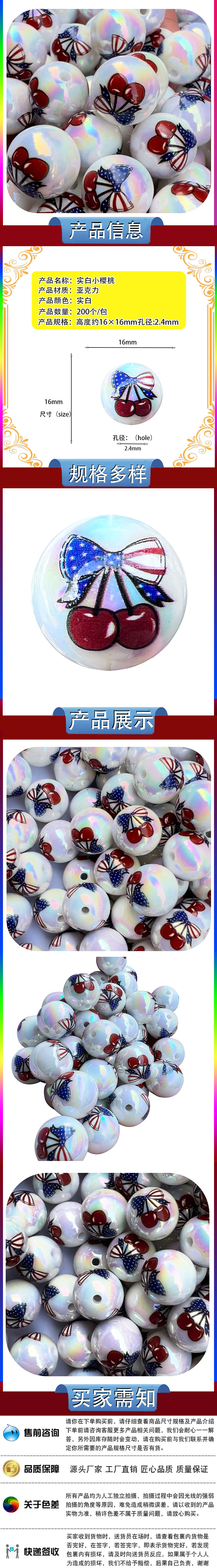 16mm solid white small cherry highlight straight hole round beads diy mobile phone charm string beads pen beads scattered beads wholesale 中文版
