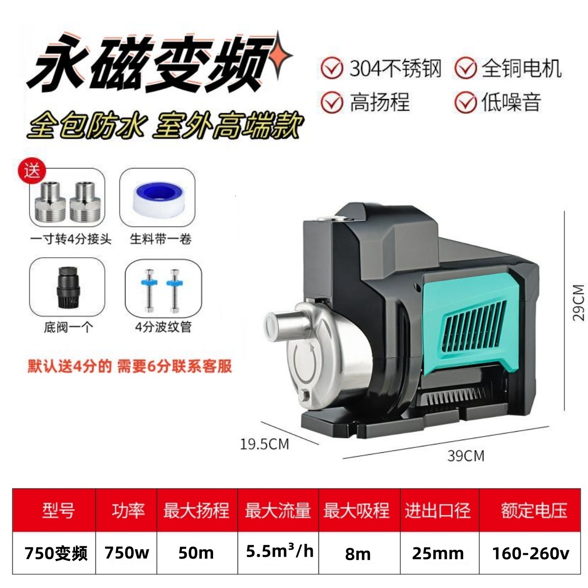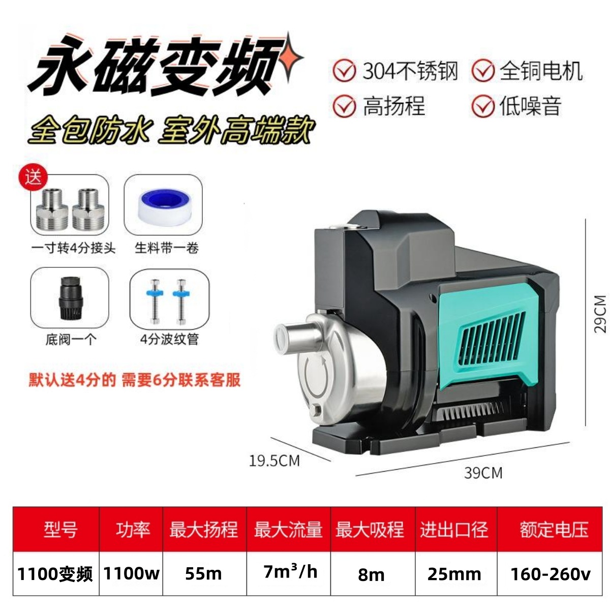 JET Injection Pump 304 Stainless Steel Smart Variable-frequency Home Water Pump Fully Automatic Piping Solar Energy Whole House Boosting Pump