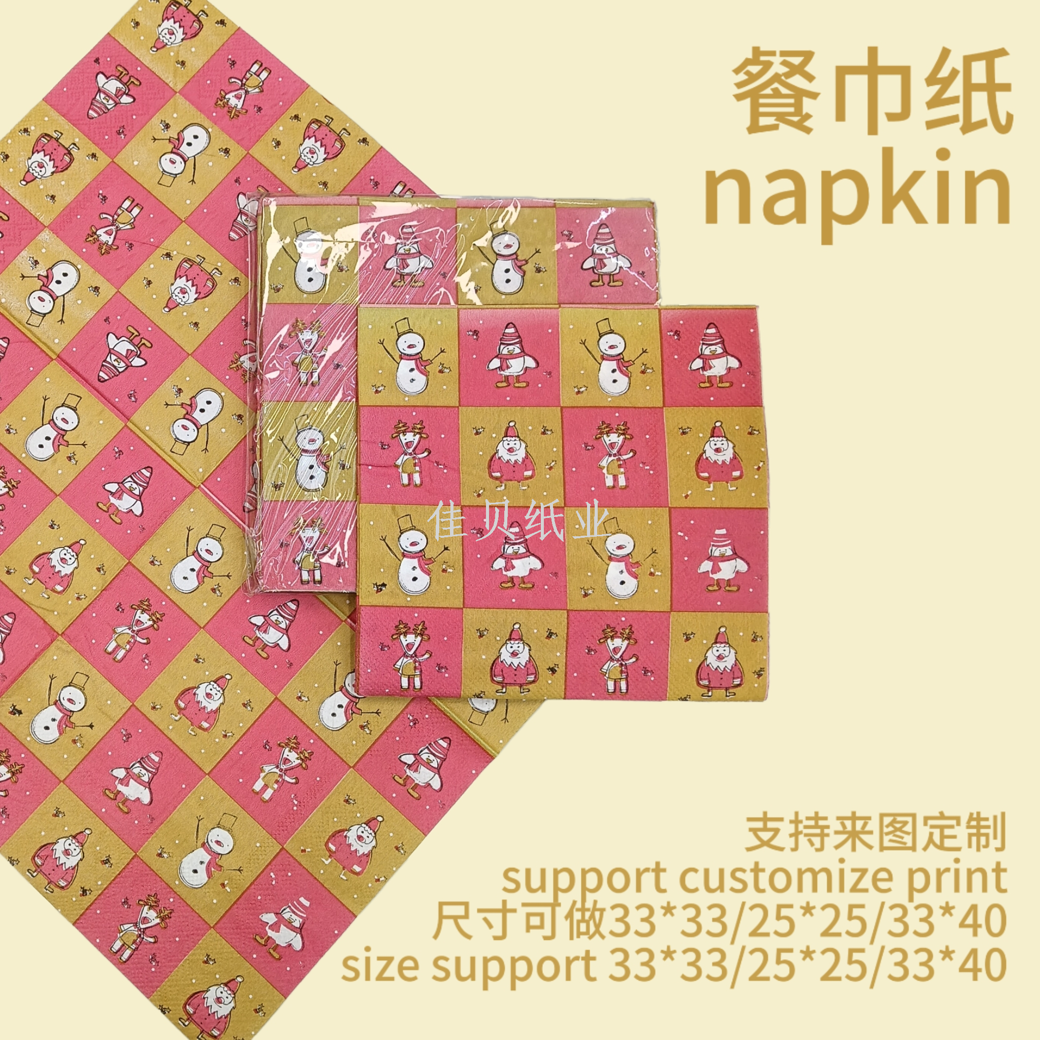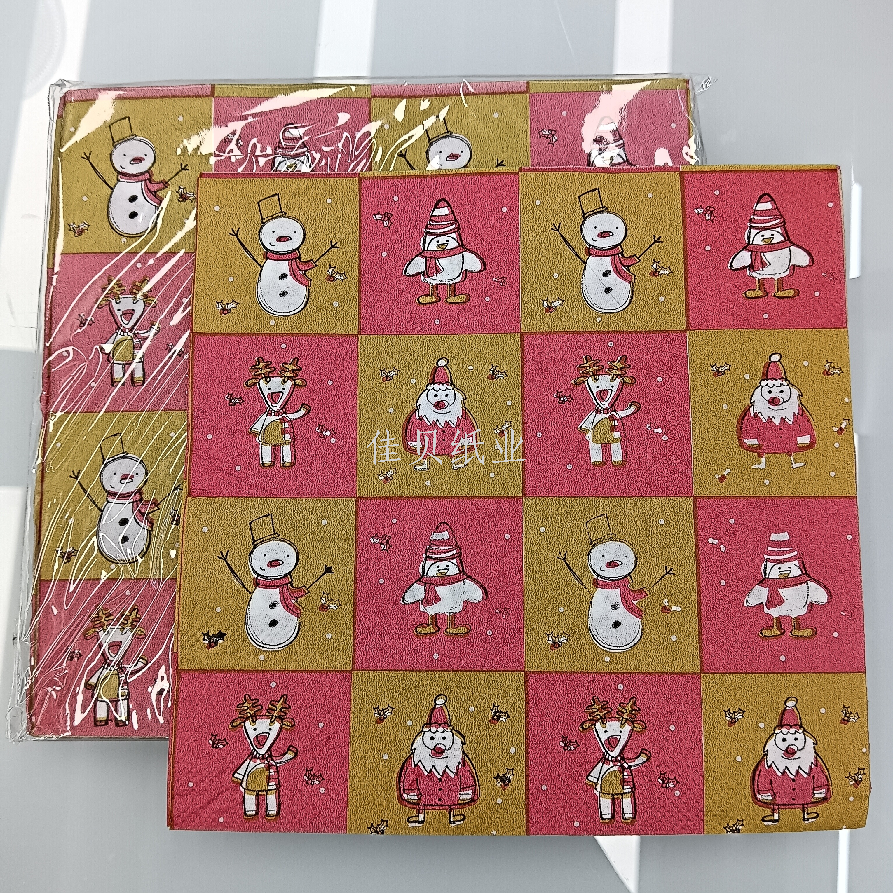 christmas calico paper wood pulp paper cartoon square tissue david's deer snowman santa claus party napkin 中文版