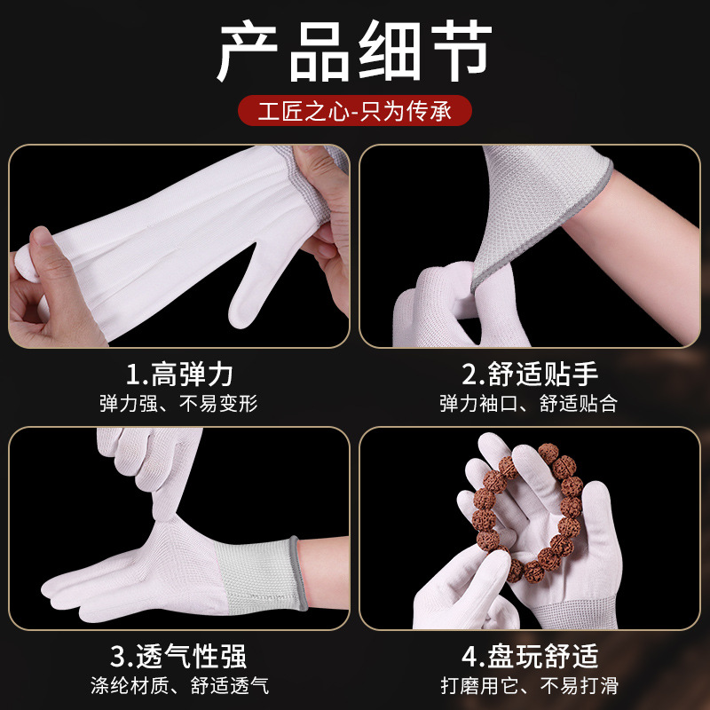 PU Coated Finger Gloves with Thickened White Nylon Palms, Electronic Dust-Proof Anti-Static Carbon Fiber Coated Glove, and PU Coated Palms Gloves