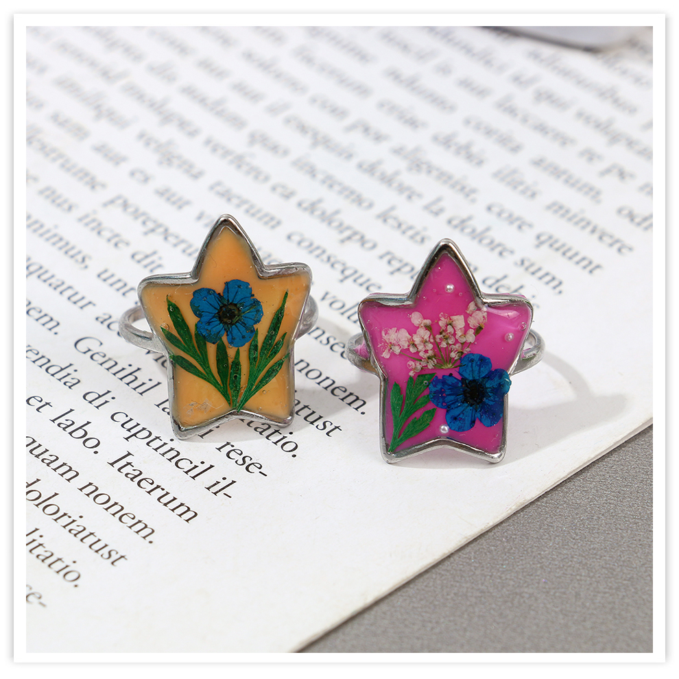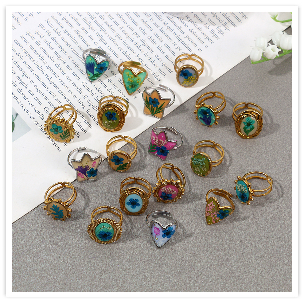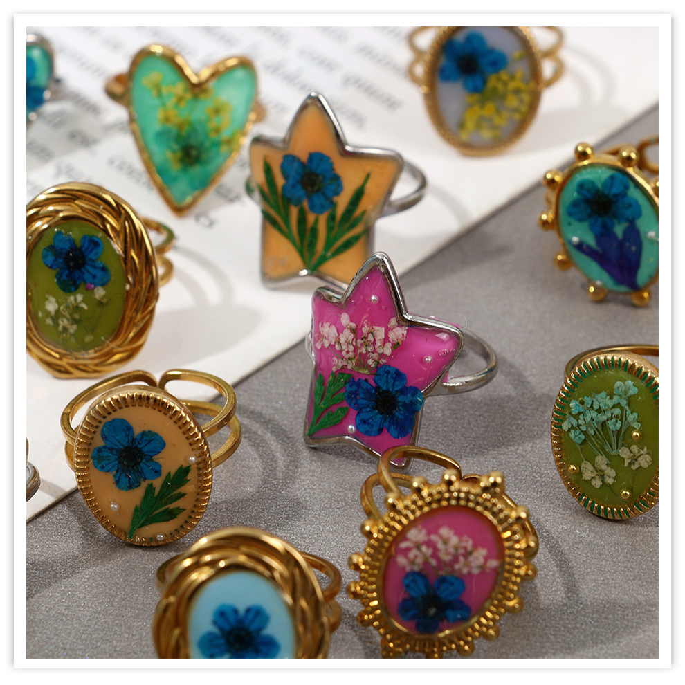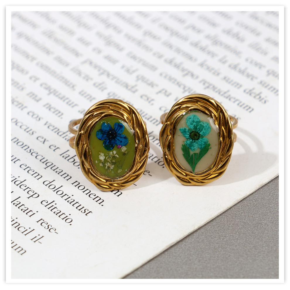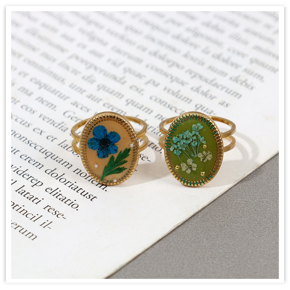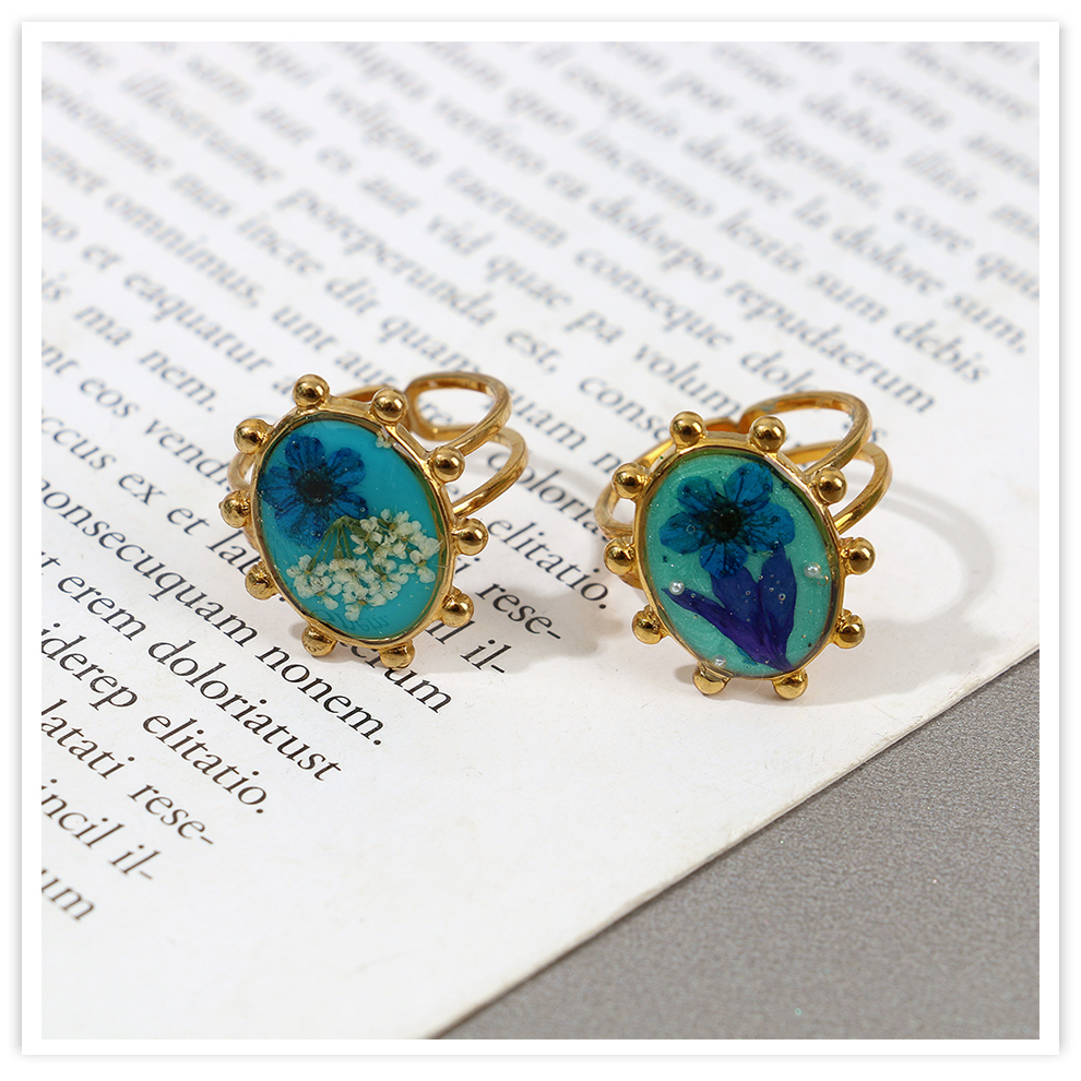 colored enamel glaze resin dried flower open personalized high-end temperament ring palace style artistic ring cross-border female 中文版
