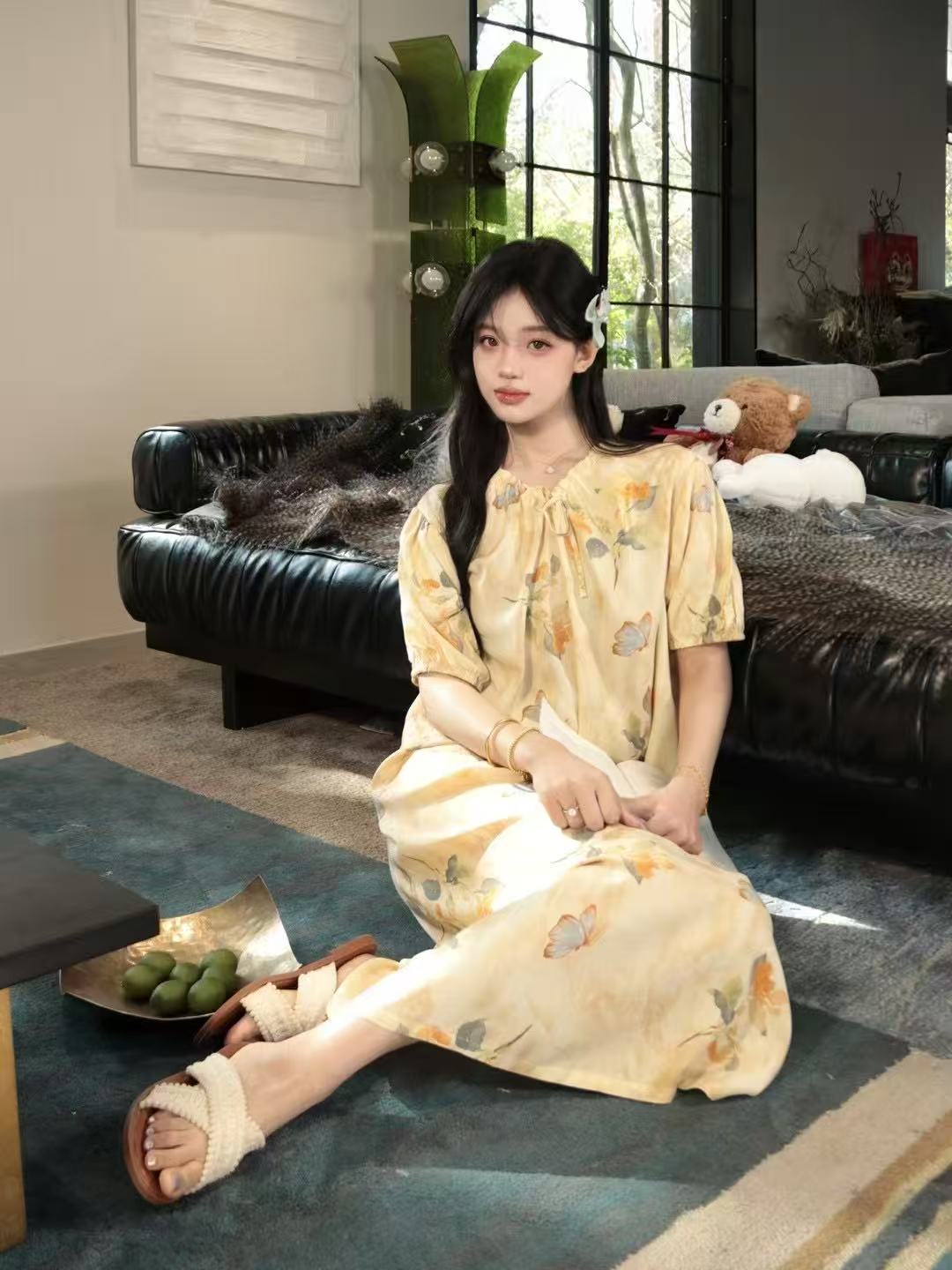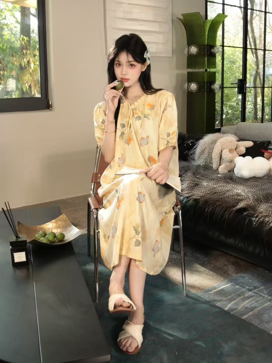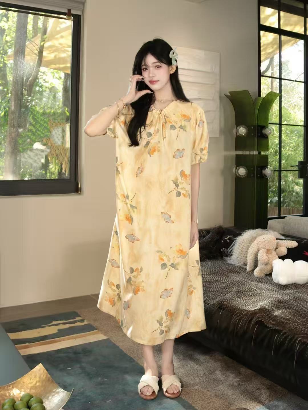 french style artificial cotton nightdress women's summer short sleeve pajamas can be worn outside loose pregnant women can wear dress homewear