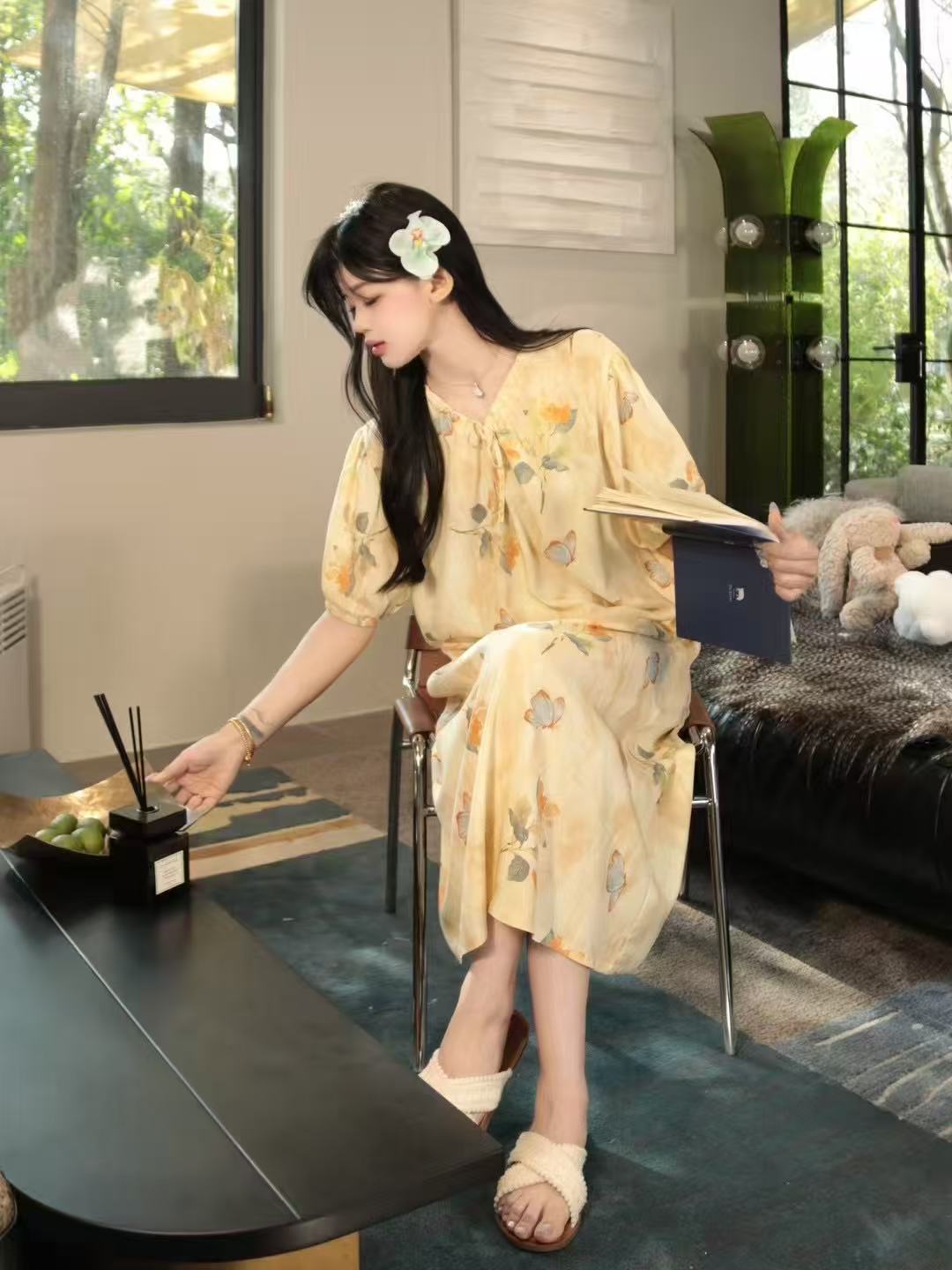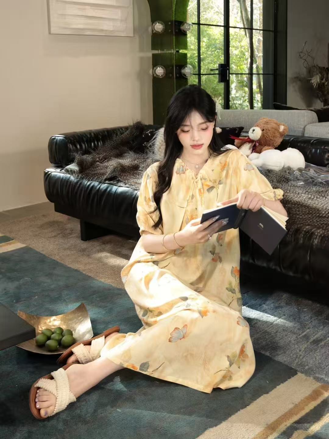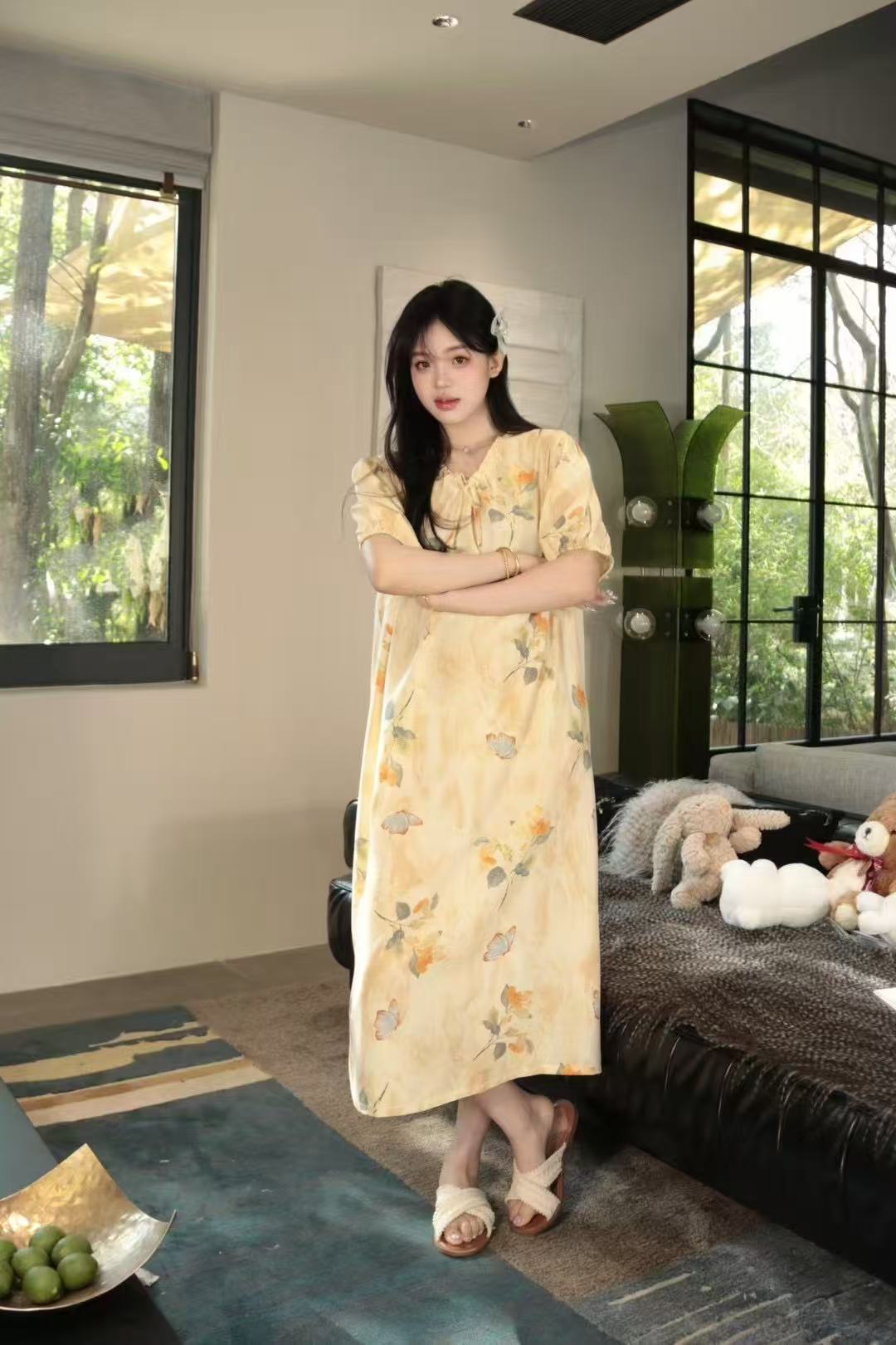 french style artificial cotton nightdress women's summer short sleeve pajamas can be worn outside loose pregnant women can wear dress homewear