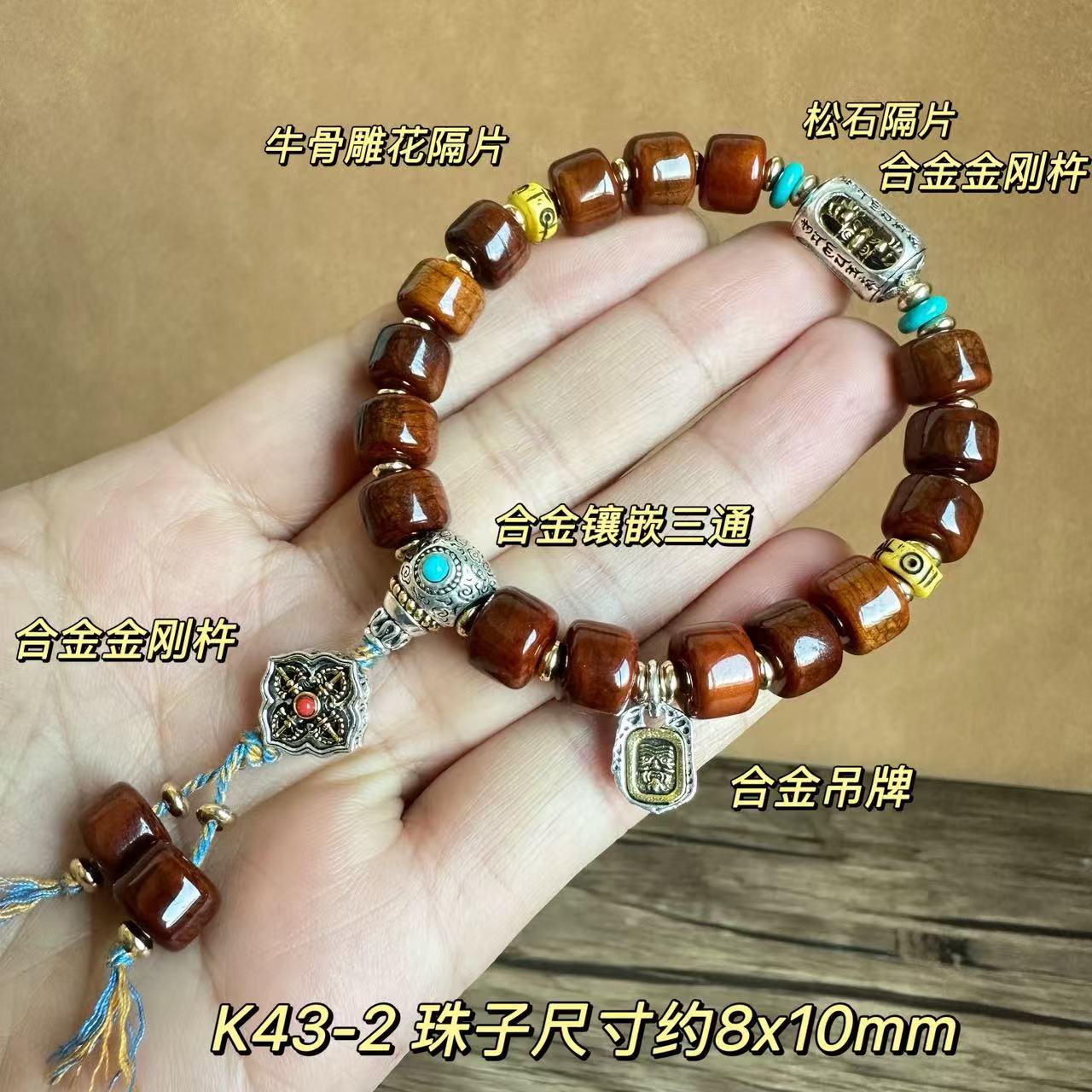 12mm ox bone bracelet [tibet beads, alloy tee, gourd]]