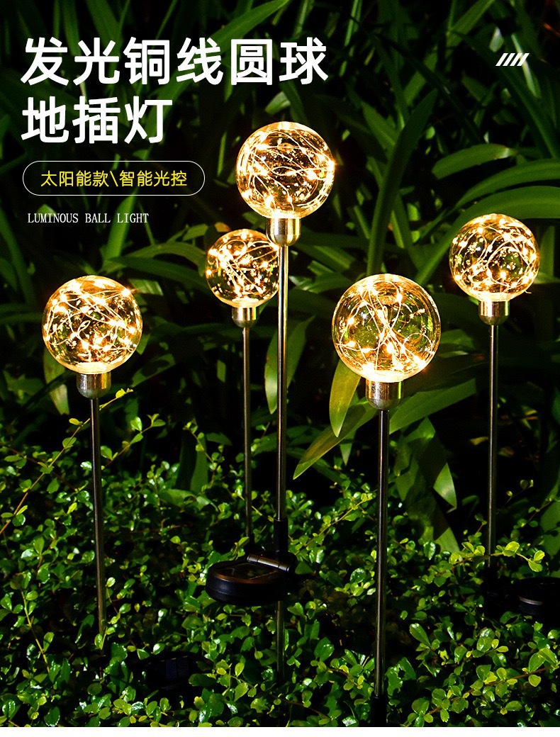 solar copper wire ball plug lamp garden courtyard decoration landscape ground plugged light outdoor luminous ball reed lamp 中文版