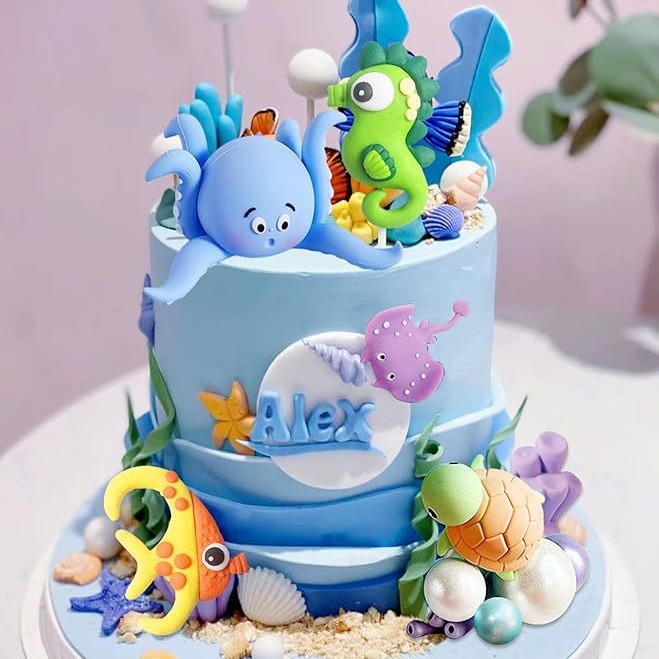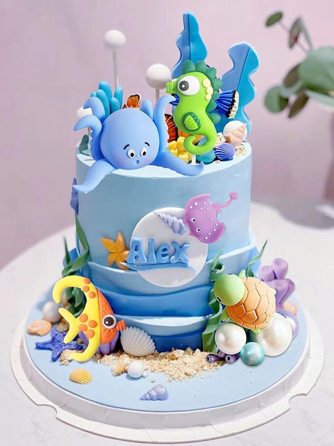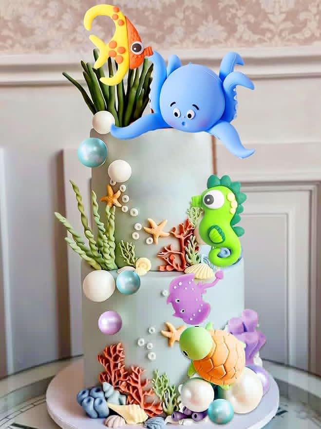 undersea cake decoration marine animal undersea party decoration marine theme baby shower birthday 中文版