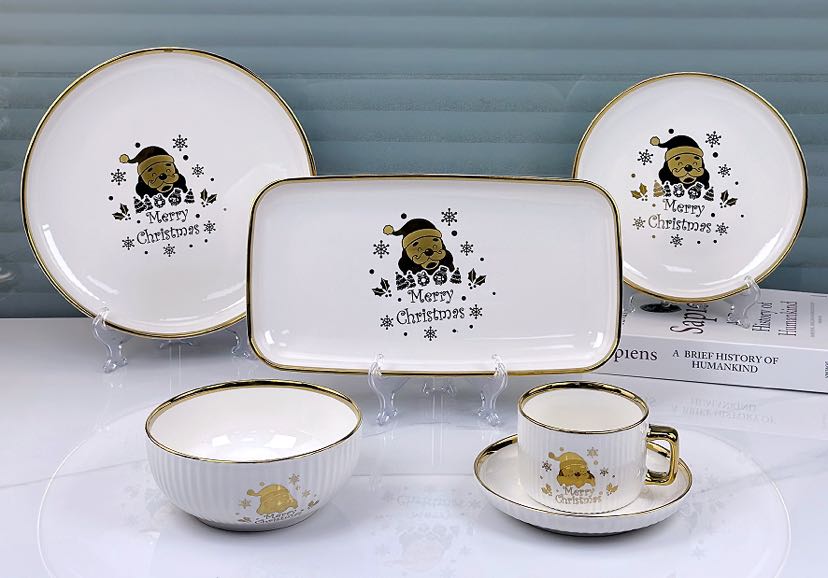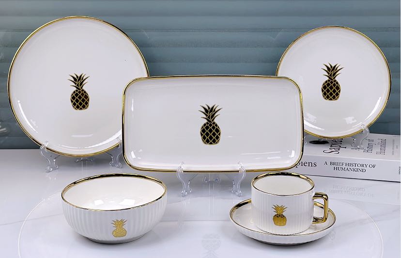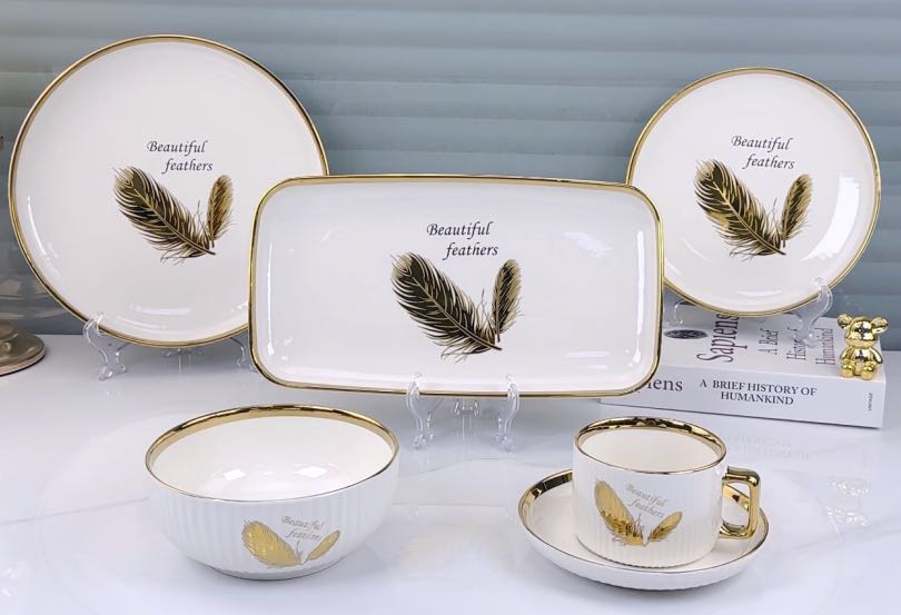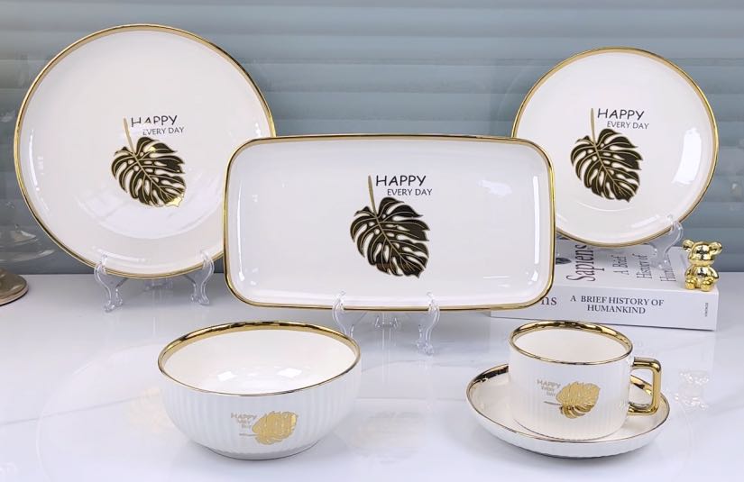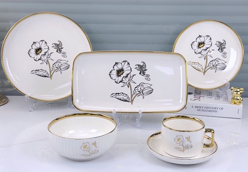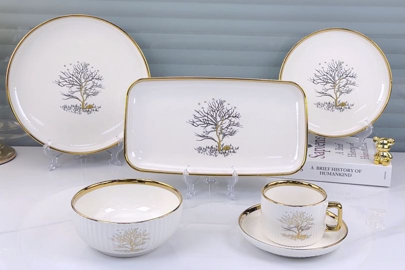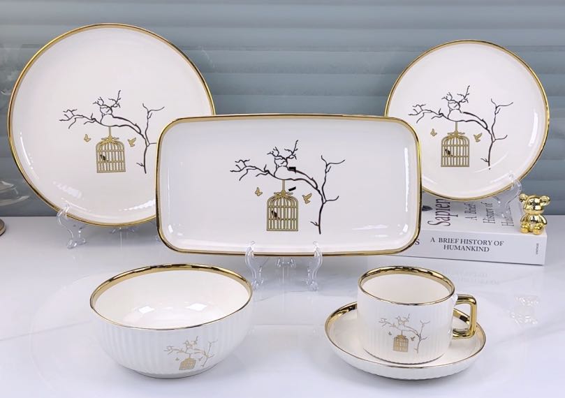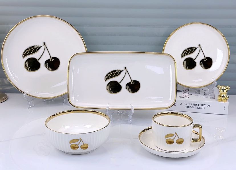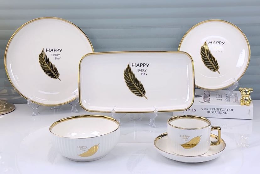 square round ceramic striped applique gold-plated 32-head series tableware