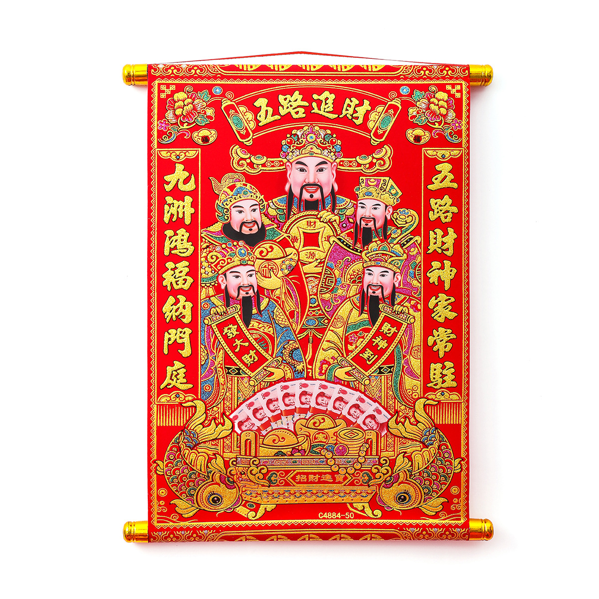color gold hanging shaft five gods of wealth 4884 [70#] 46*63.5cm