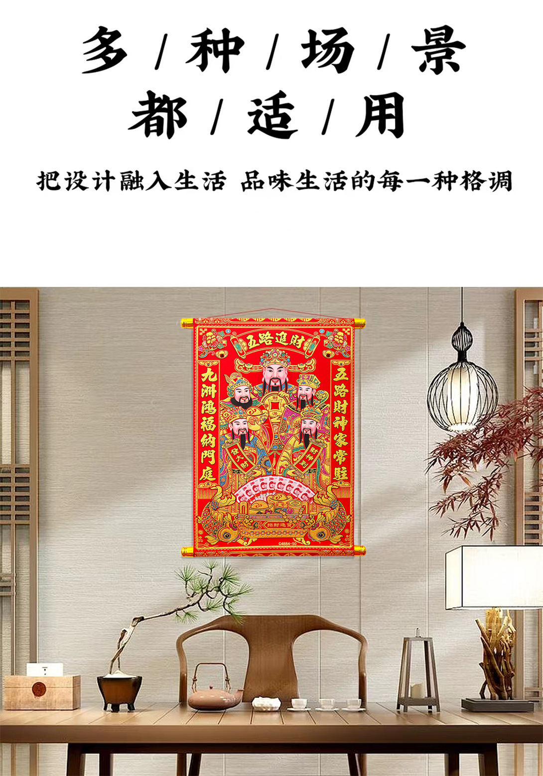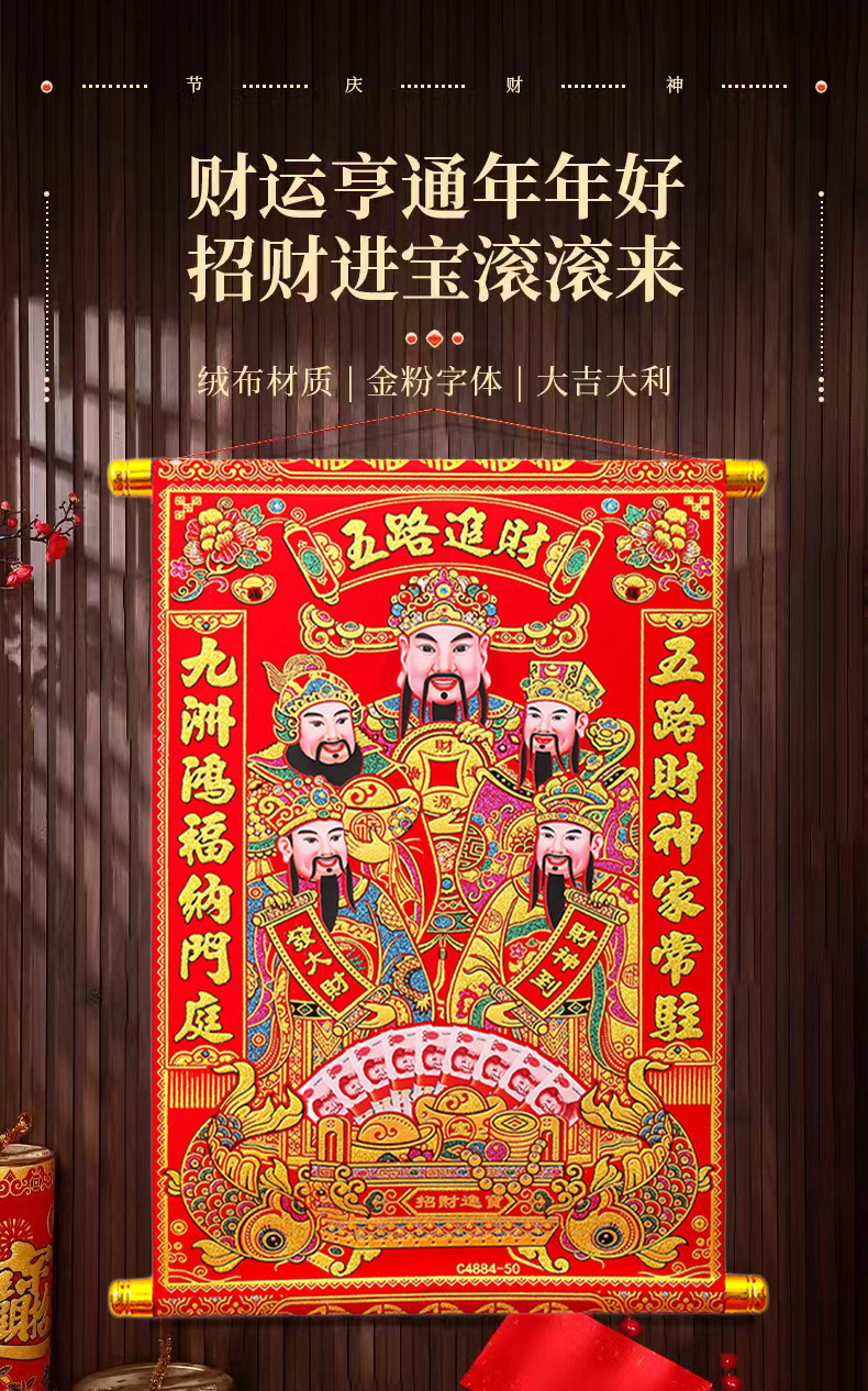 color gold hanging shaft five gods of wealth 4884 [50#] 32 * 43cm