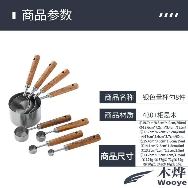 silver measuring cup measuring spoon 8-piece set-opp bag