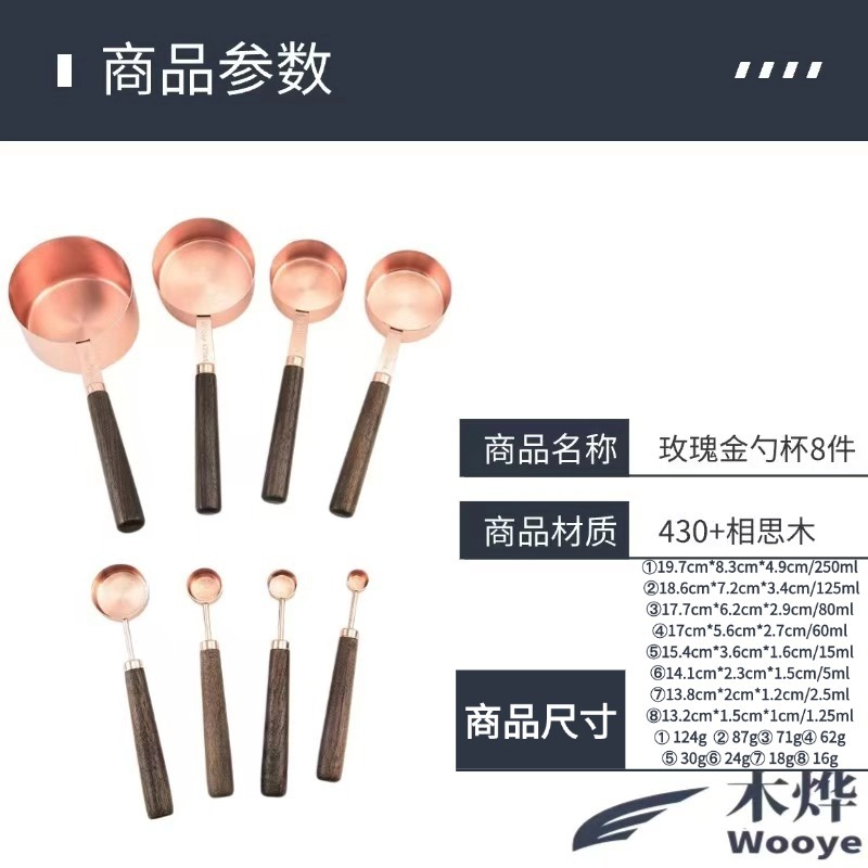 rose gold measuring spoon and measuring cup 8-piece set-opp bag