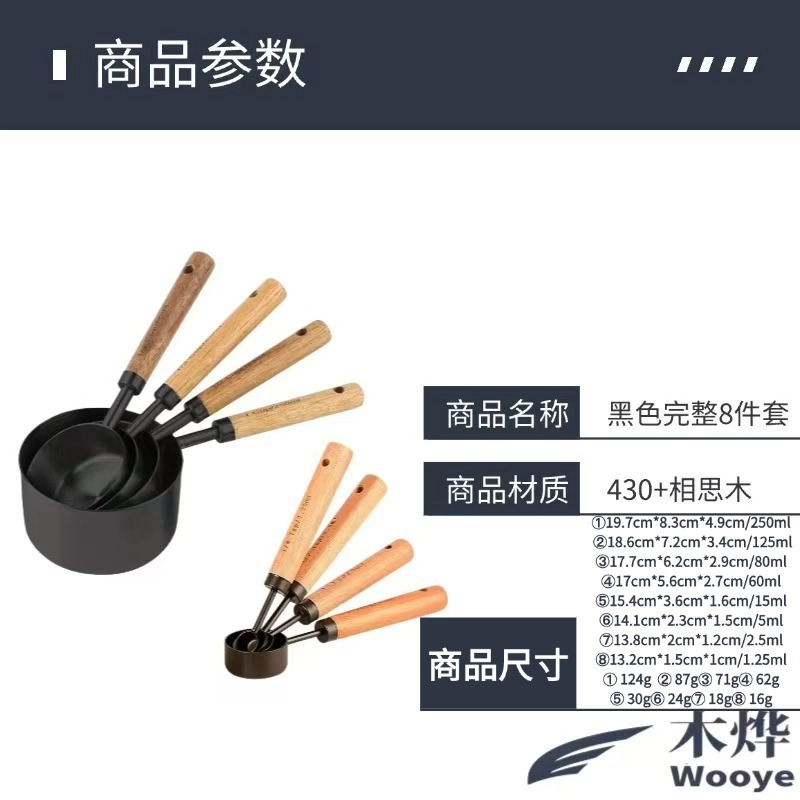 black measuring cup measuring spoon 8-piece set-opp bag