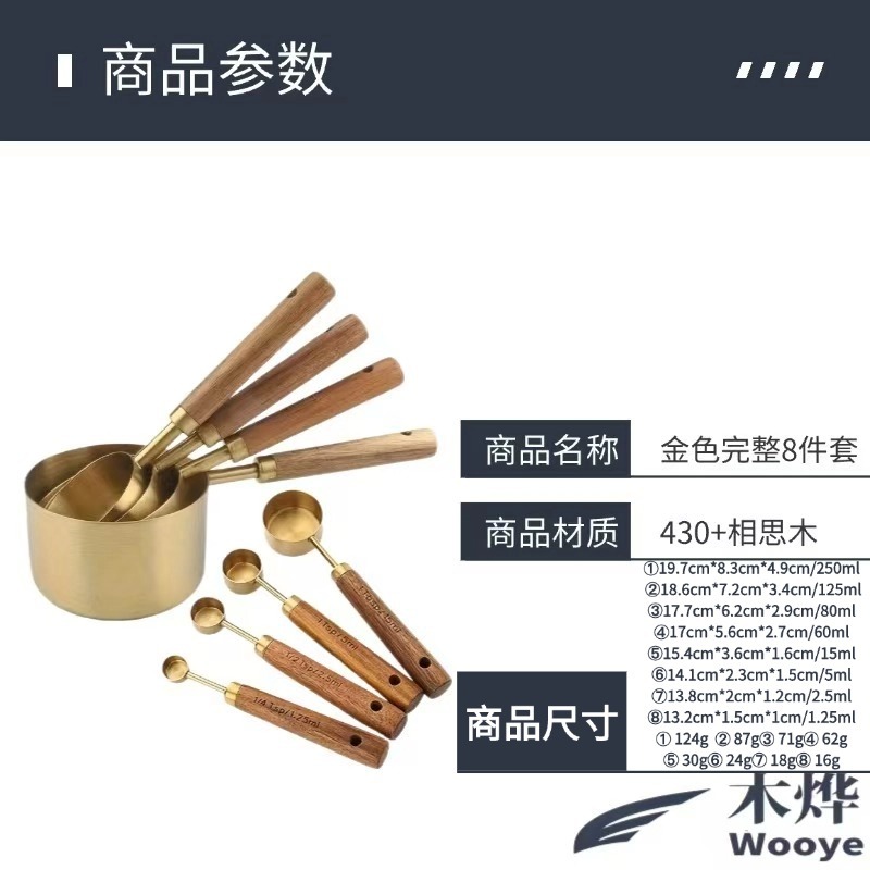 gold measuring cup measuring spoon 8-piece set -- opp bag