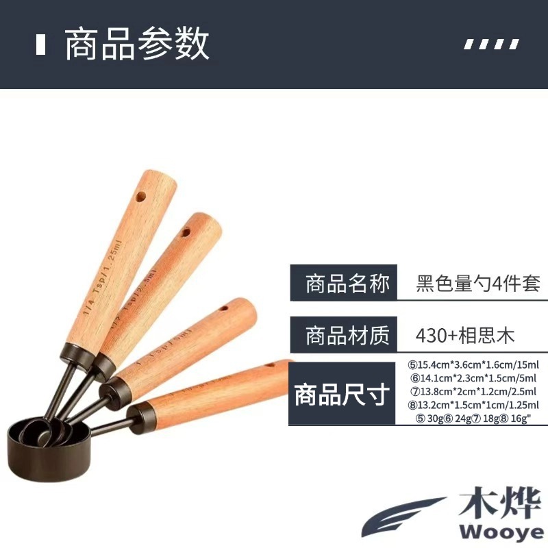 black measuring spoon 4-piece set-opp bag