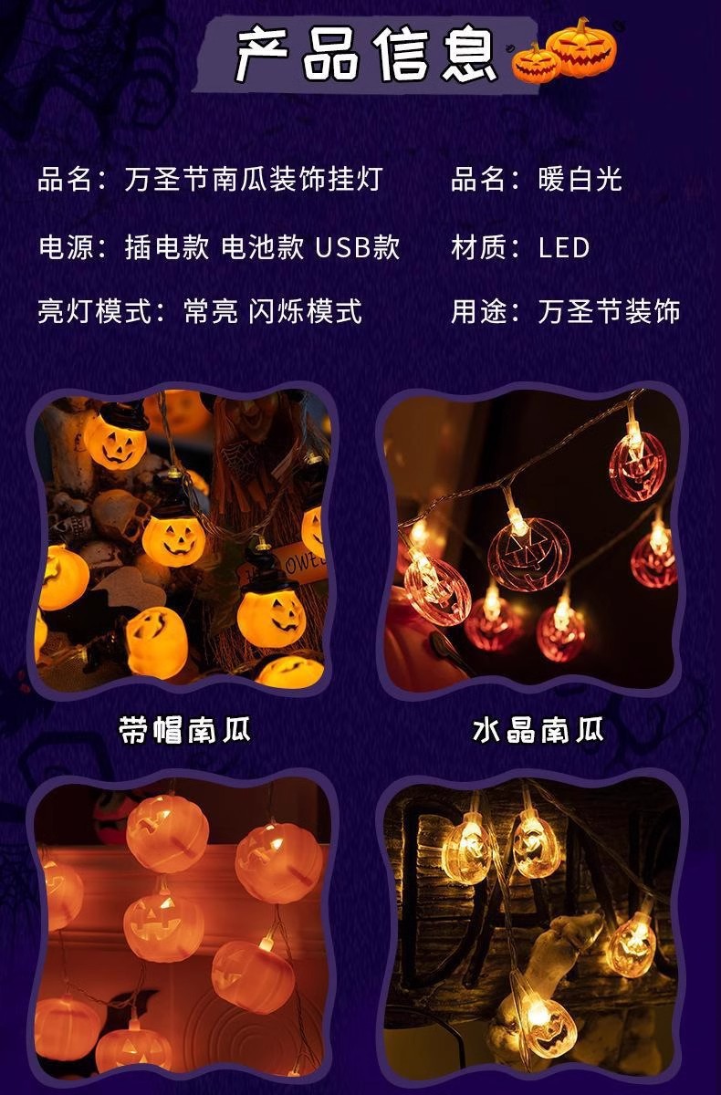 foreign trade exclusive new halloween lighting chain bat pumpkin skull combination pendant halloween decorative string lights lighting chain 中文版