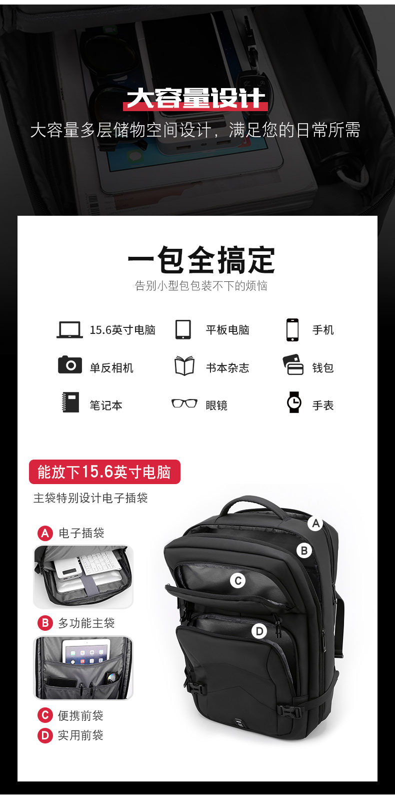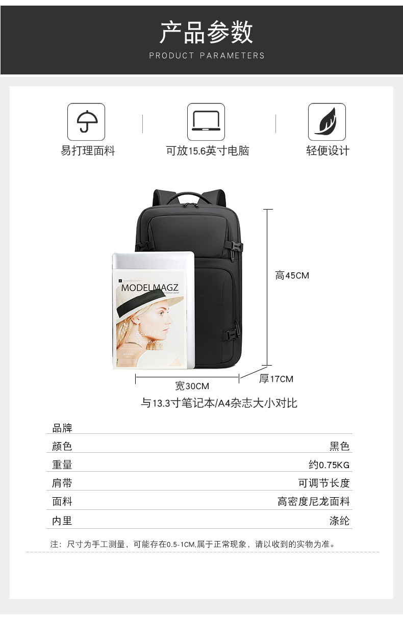multifunctional laptop bag burden-reducing travel school bag simple travel large capacity lightweight commuter backpack 中文版