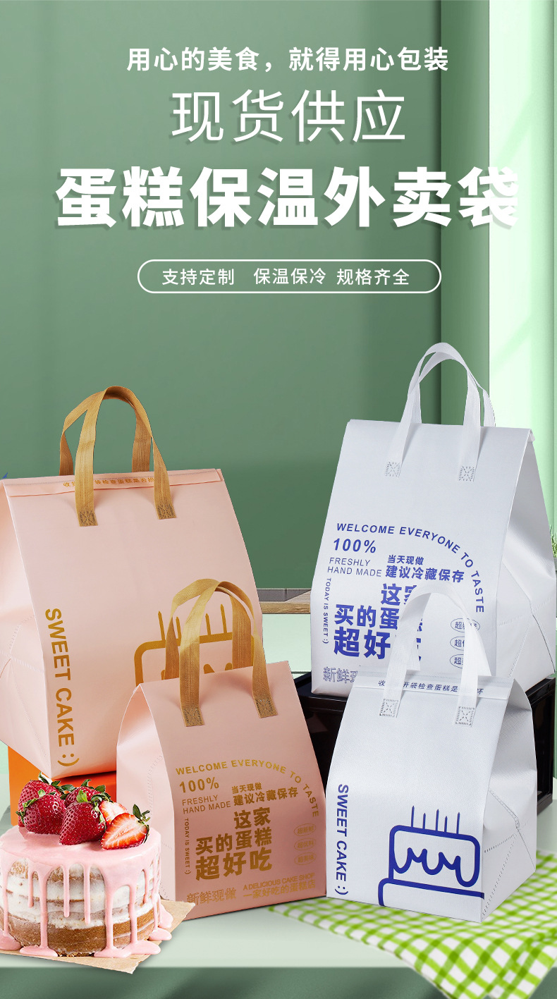 factory in stock portable aluminum foil cake box thermal bag heat insulation takeaway freshness protection package dessert thermal bag pcs heightened 中文版