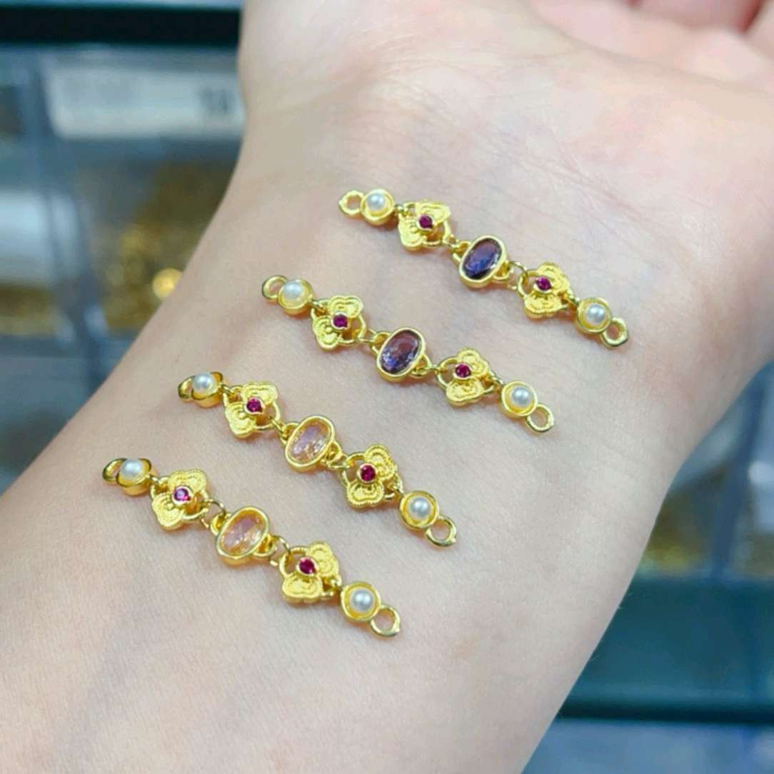 The national style golden small half chain, pearls, colored gems + exquisite carved flowers, wear it directly to weld the Oriental aristocratic atmosphere on the wrist! It matches the bracelet and the braid rope are exceptional, retro and fashionable, who understands this kind of beauty engraved in the DNA!