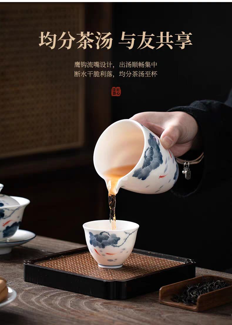 12 head lotus with fish blue and white hand drawn suit