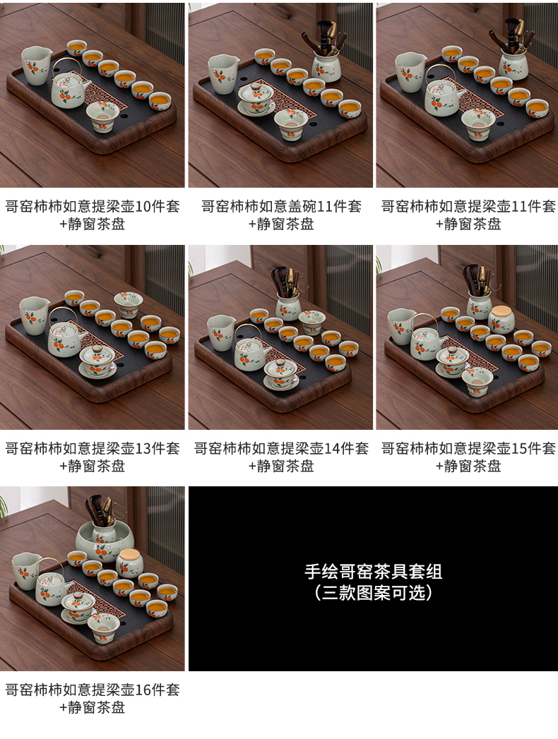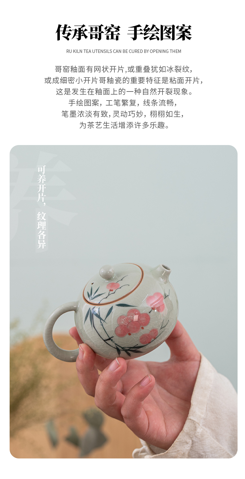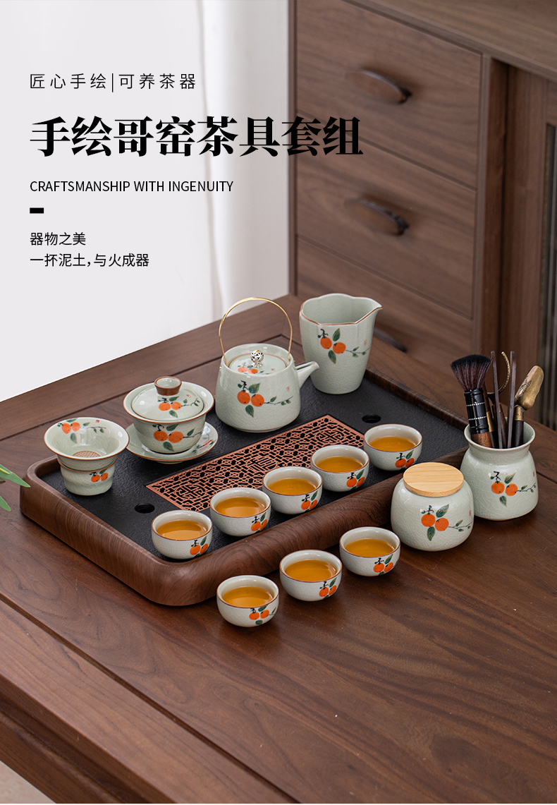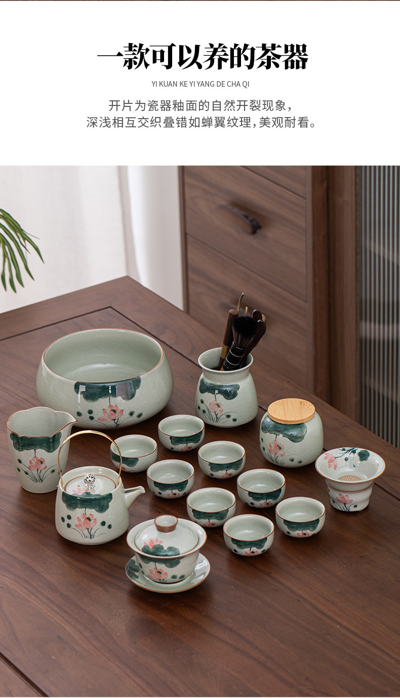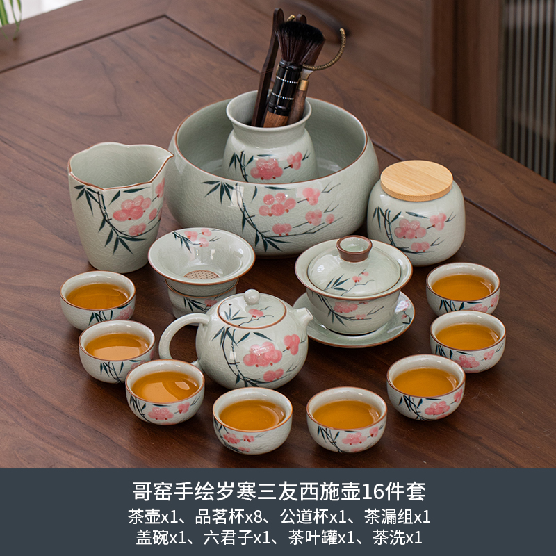 ge kiln hand-painted 16-piece set for old and cold three friends xi shi pot