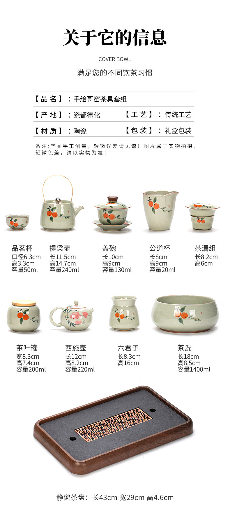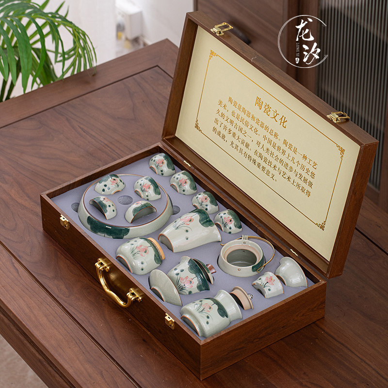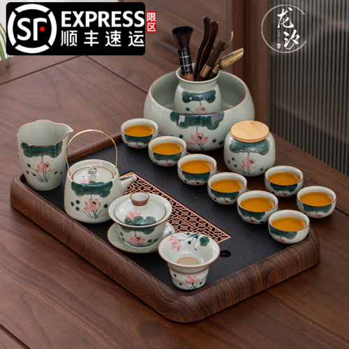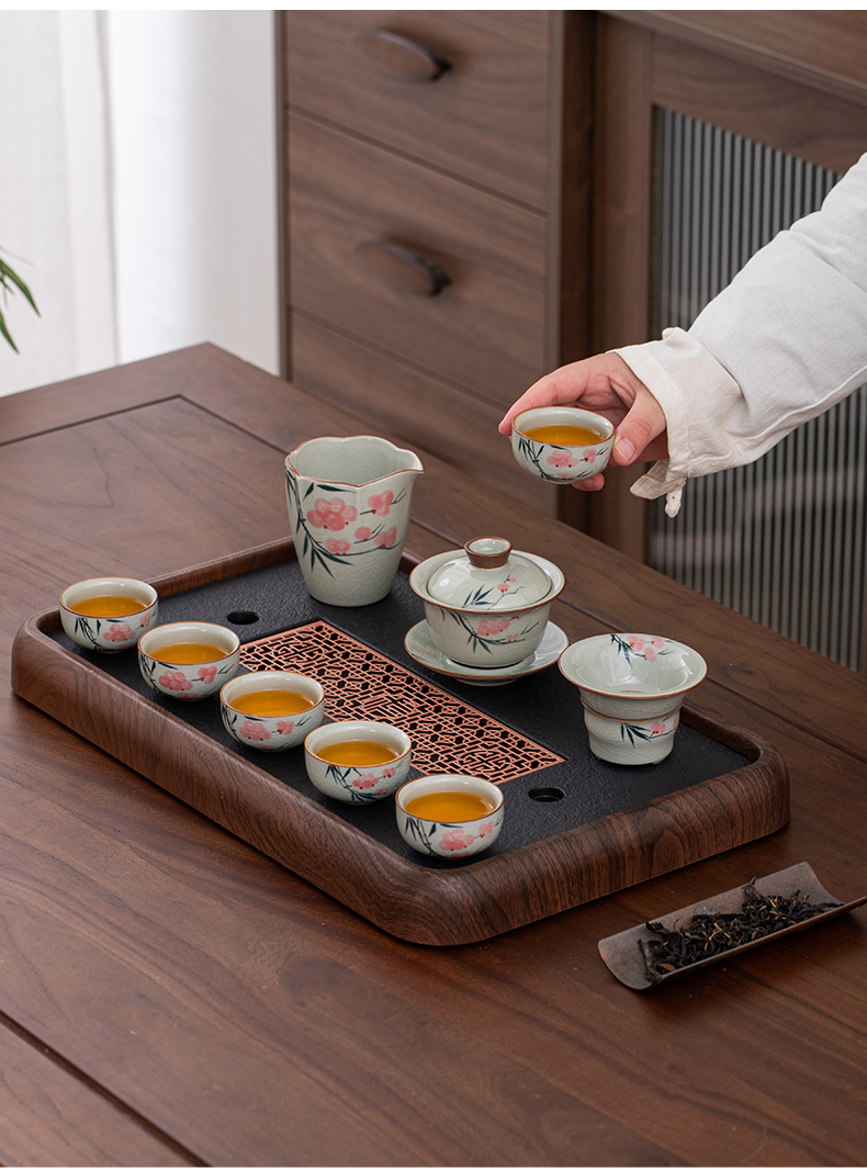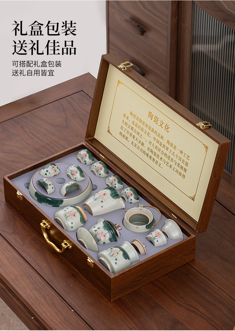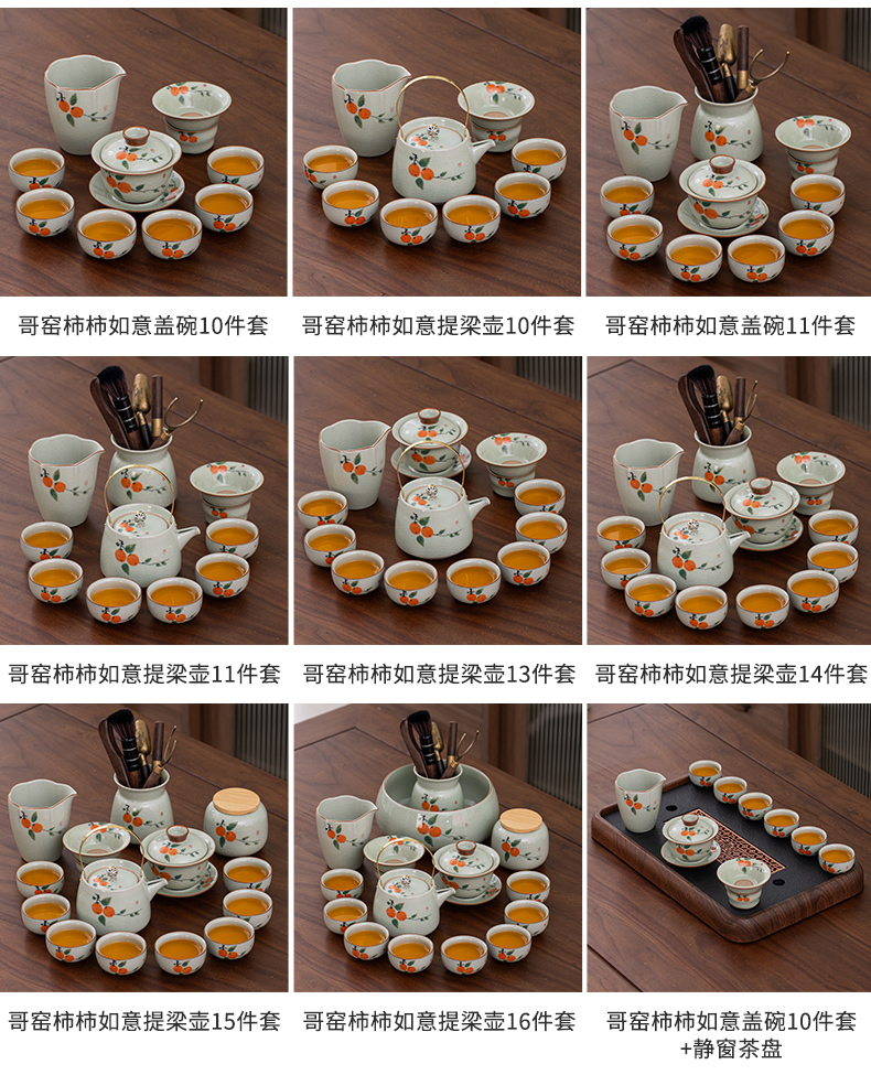 ge kiln hand-painted 16-piece set for old and cold three friends xi shi pot