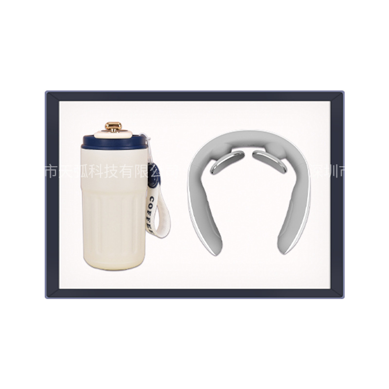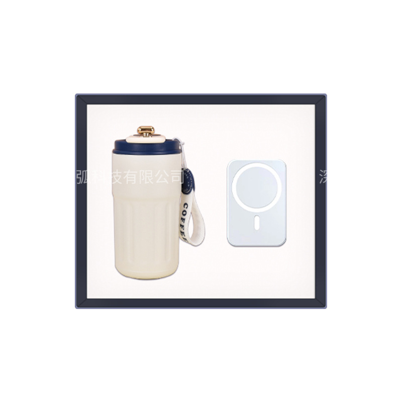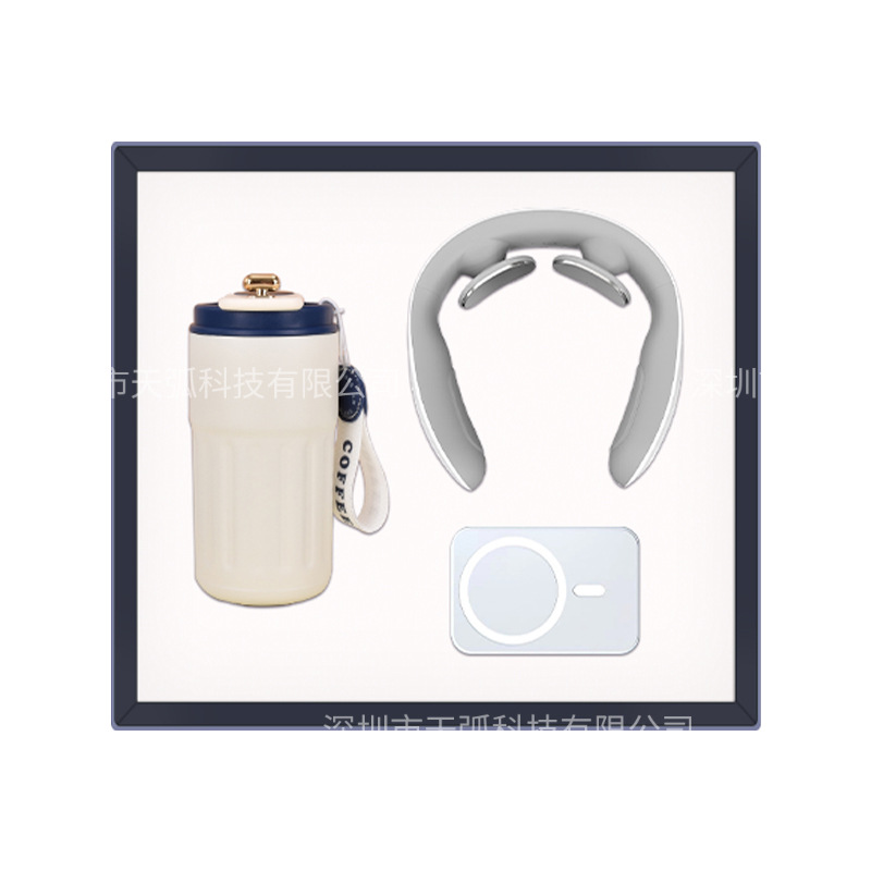 white coffee cup + power bank + massage instrument