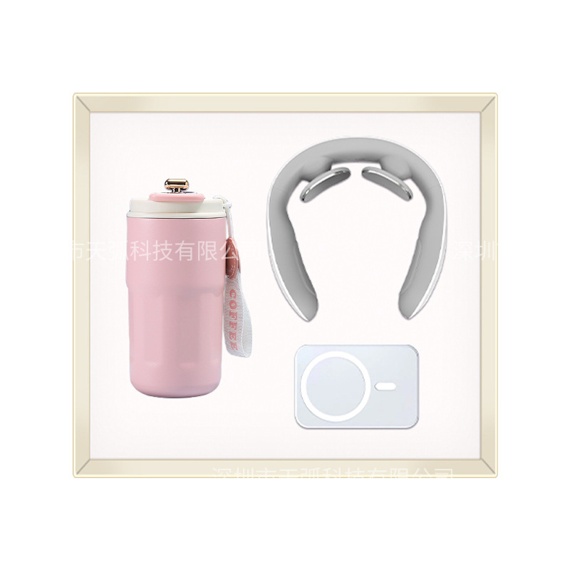 pink coffee cup + power bank + massage instrument