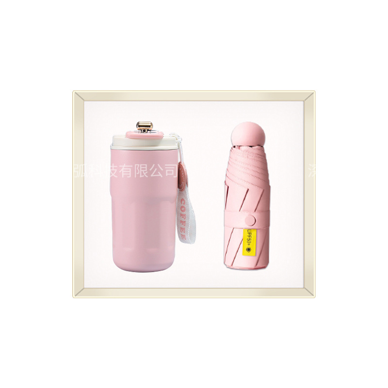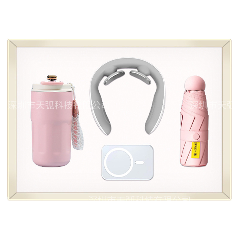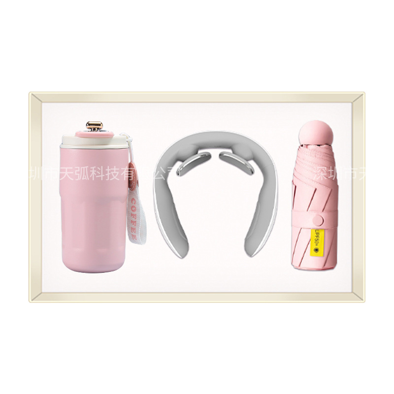 pink coffee cup + massage instrument + power bank + umbrella