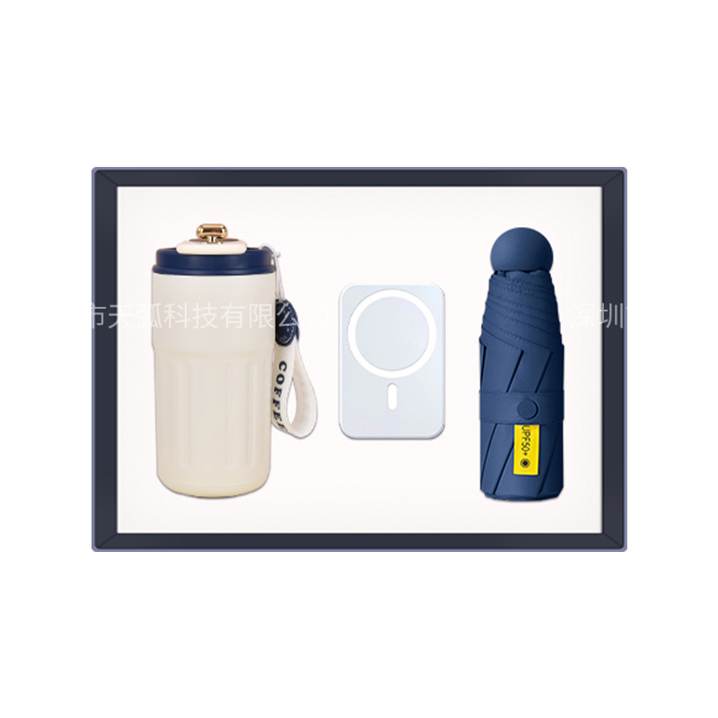 blue coffee cup + massage instrument + power bank + umbrella