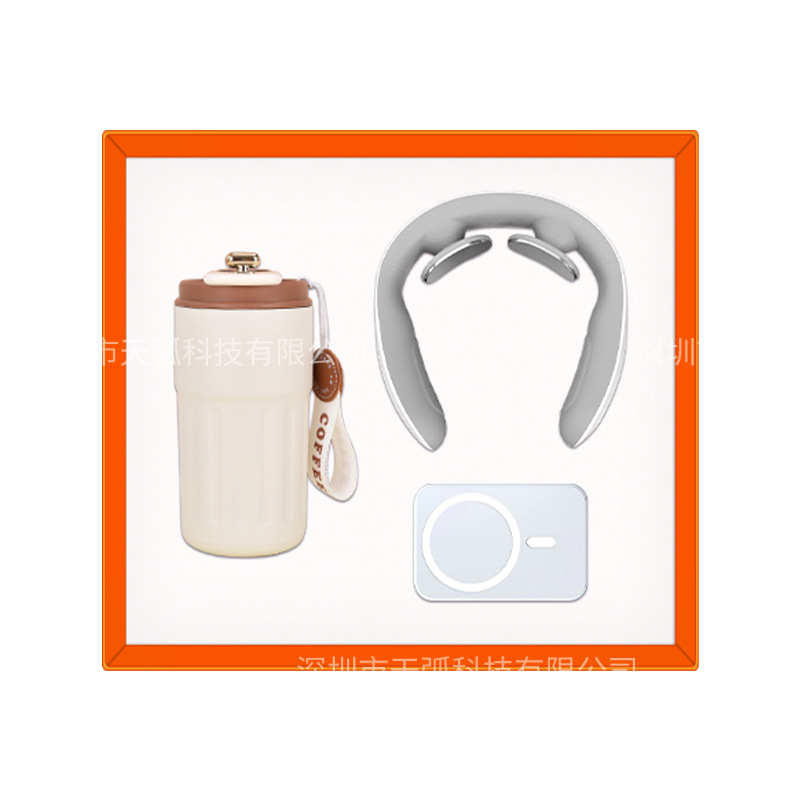 brown coffee cup + power bank + massage instrument