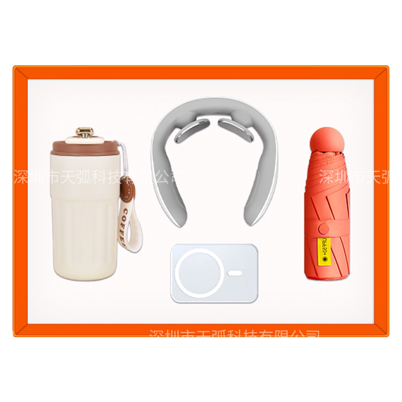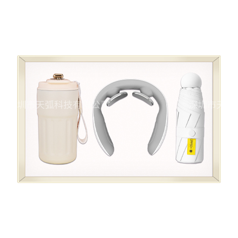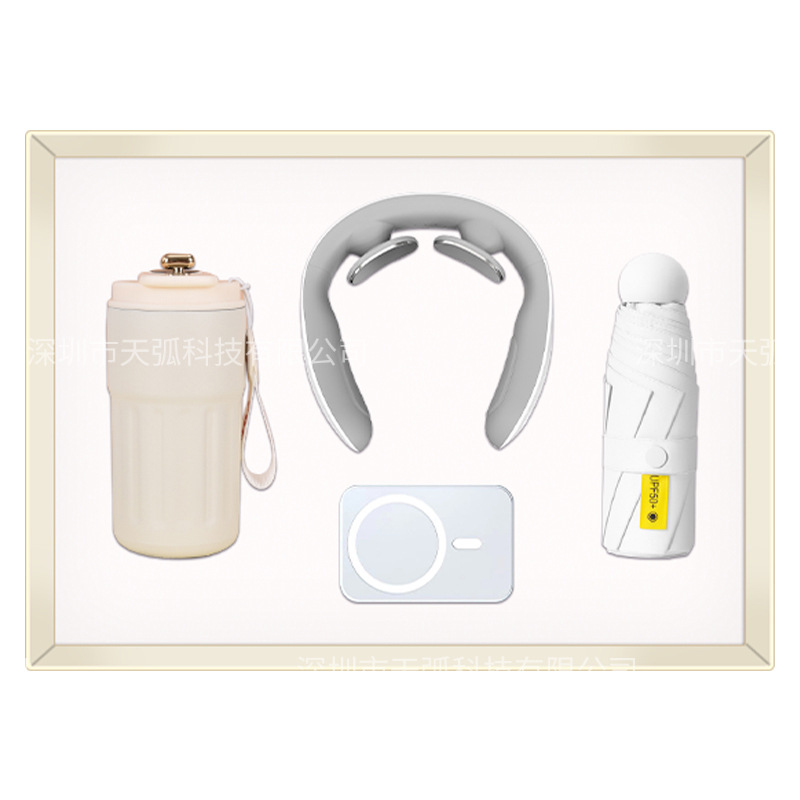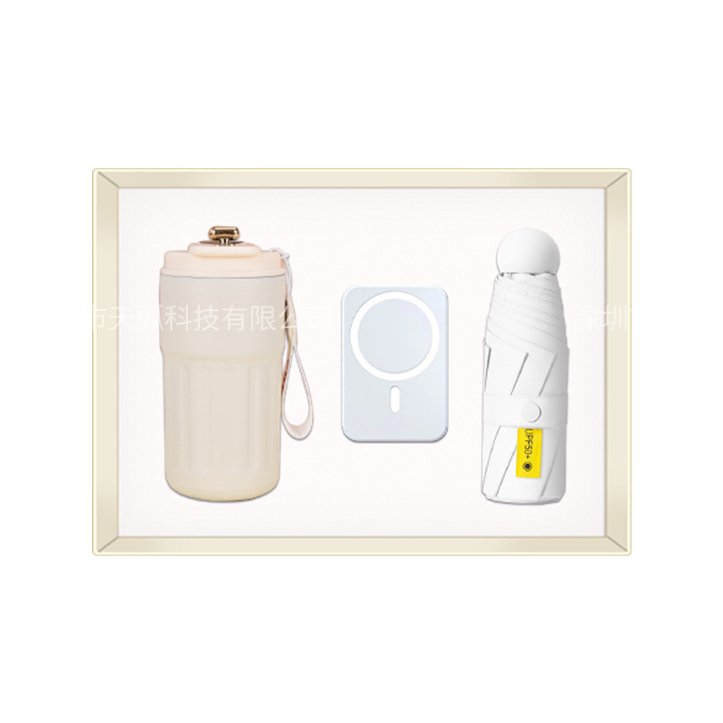 white coffee cup + massage instrument + power bank + umbrella