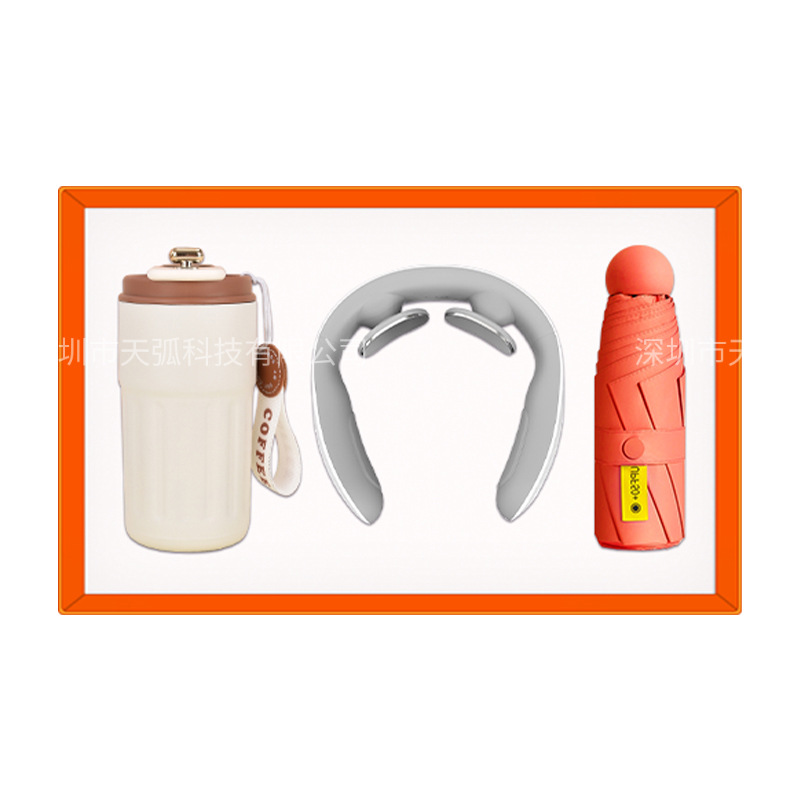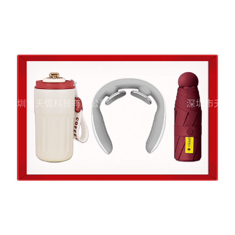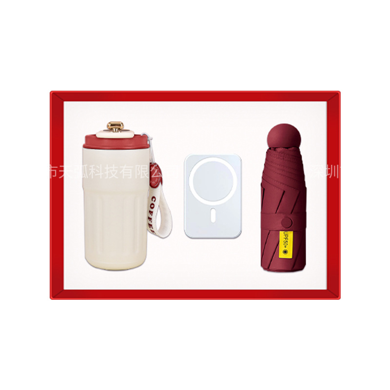 red coffee cup + massage instrument + power bank + umbrella