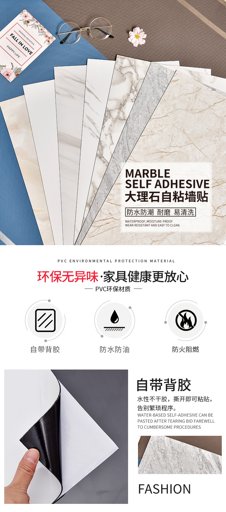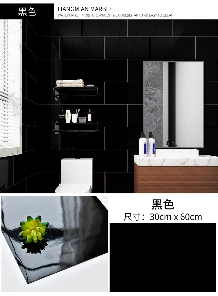 pvc wall self-adhesive sticker wall covering ugly 3d three-dimensional waterproof moisture-proof wallboard imitation tile marble bathroom sticker
