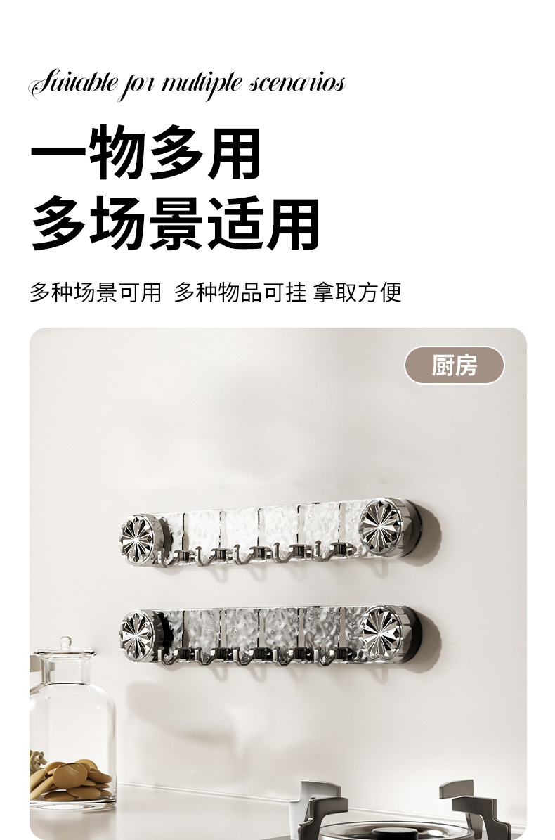 light luxury suction cup water ripple row hook home wall mount multi-row storage bathroom strong no punch hook