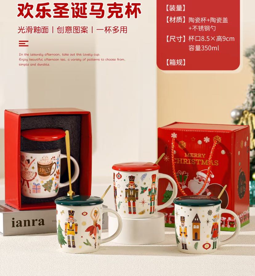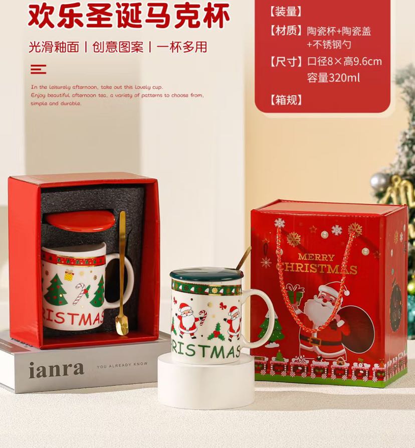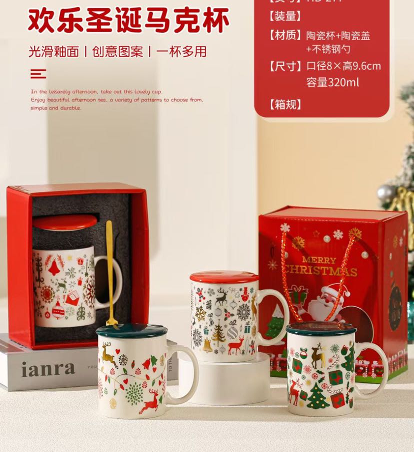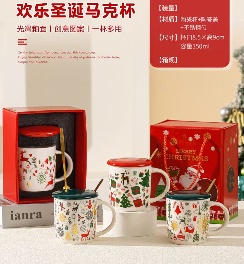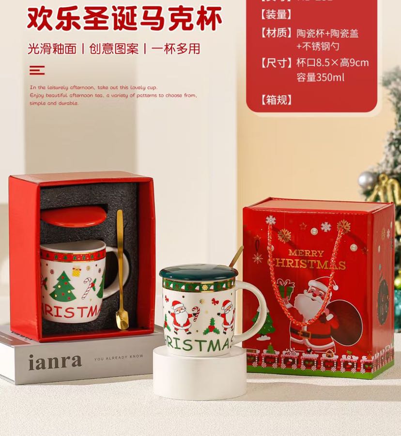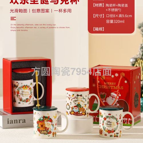 square round ceramic happy christmas cup series gift cup mug