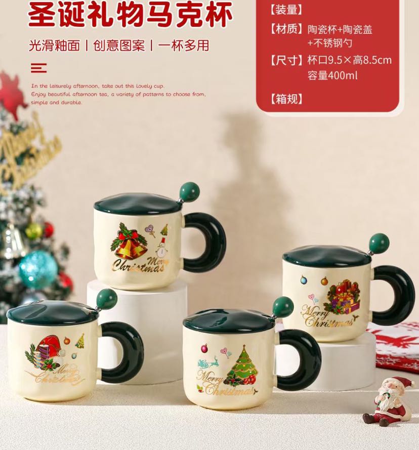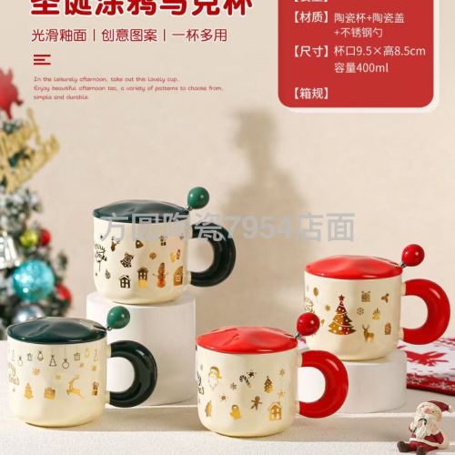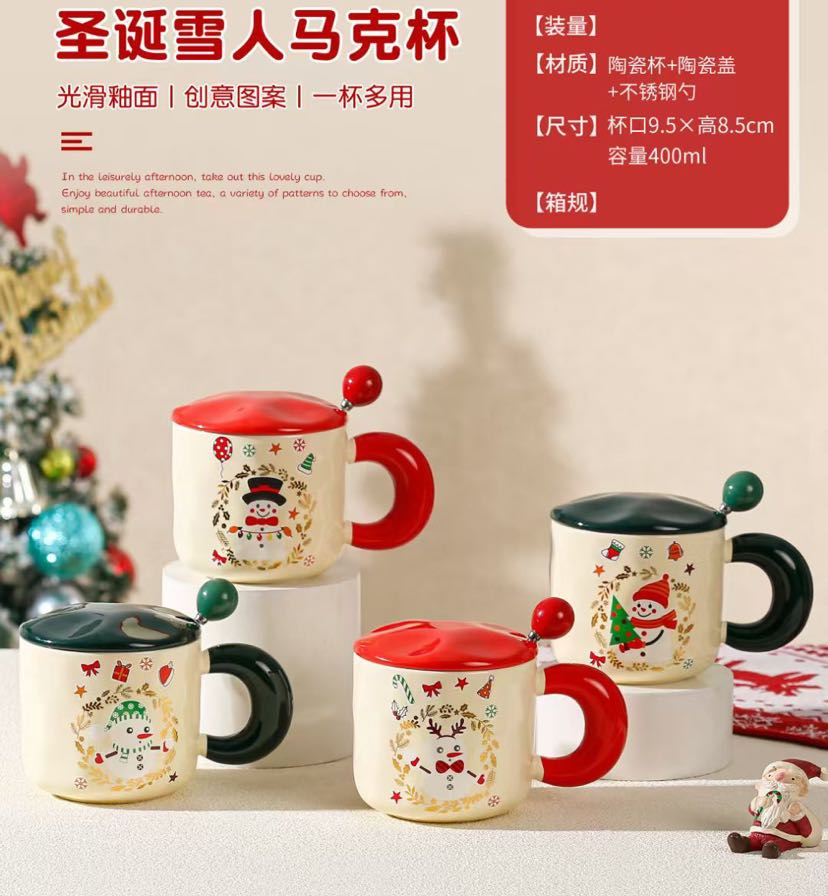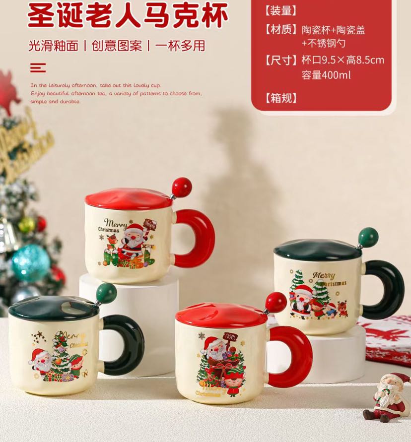 square round ceramic happy christmas mug gift cup