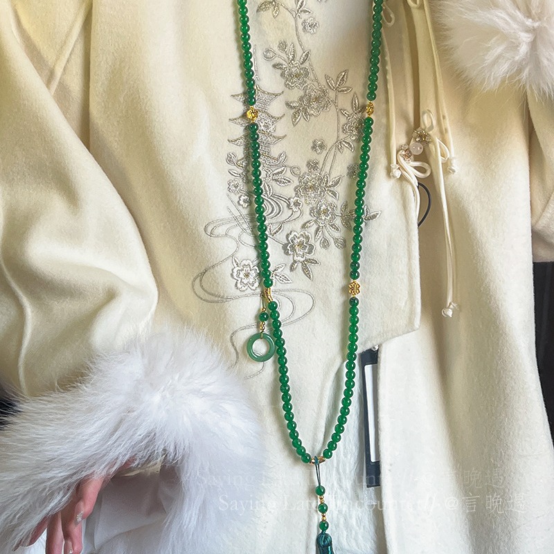 autumn fragrance green tassel necklace-130cm crossbody