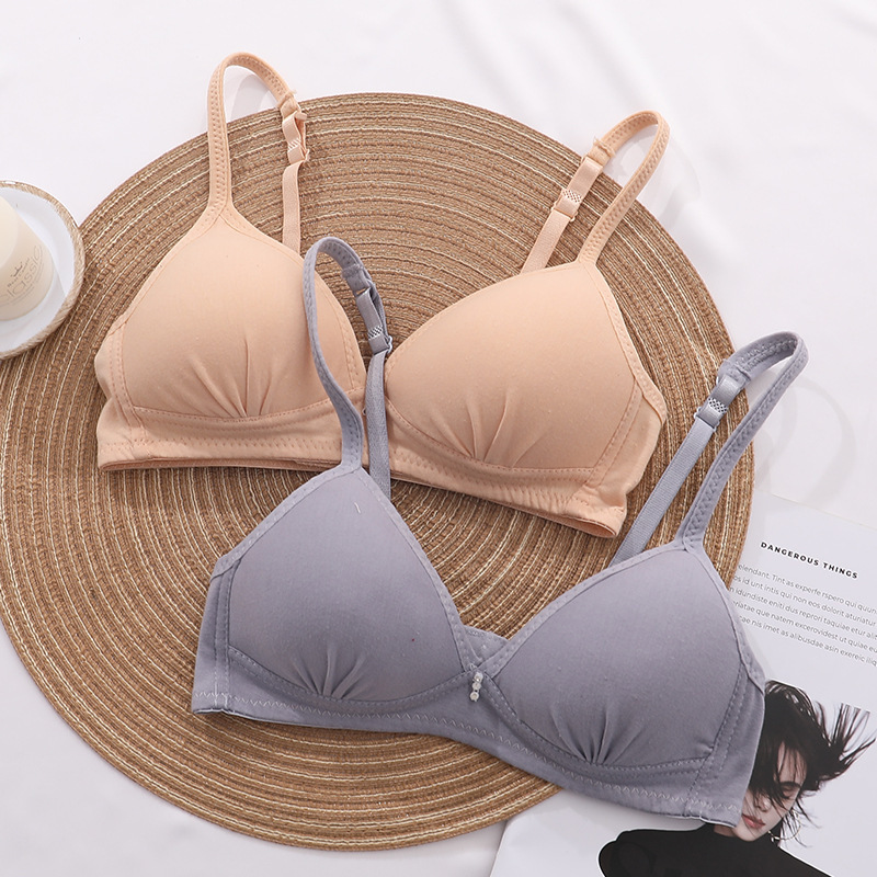 no steel ring girl's underwear foreign order new push up solid color simple thin mould cup anti-exposure breathable bra wholesale 中文版