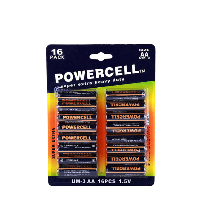 【Product Name】: POWERCELL Battery 【Product Model】: AA Battery, 16 pieces/card 【Product Material】: Brand: STARLO Type: AA Zinc-Manganese Battery Model: 5-cell AA Battery Standard Voltage: 1.5 (V) Specification: 5-cell Discharge Condition: 3.9 (Ohms) Cut-off Voltage: 0.9 (V) Discharge Time: 50 minutes Product Certification: ROHS Battery: R6AA Battery Usage: Toys, Remote Control, Electric Motors, etc. Packaging Quantity: 72 cards * 16 pieces = 1152 pieces The company adheres to the business philosophy of 'ensuring first-class quality and maintaining top-level reputation,' and insists on the principle of 'customer first' to provide high-quality services for our clients. We welcome your call to discuss business! |