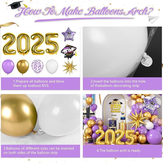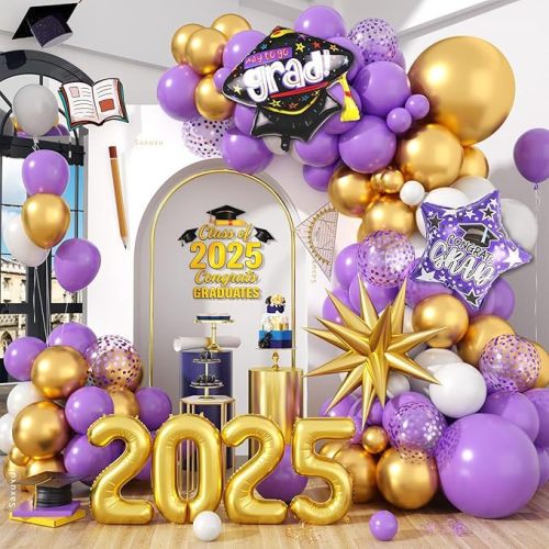 2025 graduation party decoration purple gold balloon with congratulations graduation cap 2025 digital balloon university 中文版