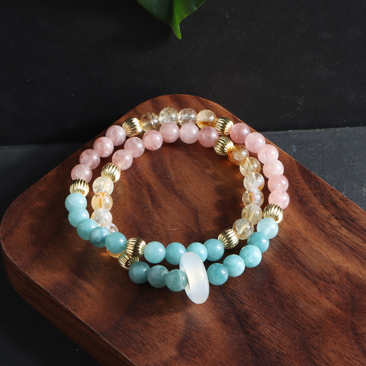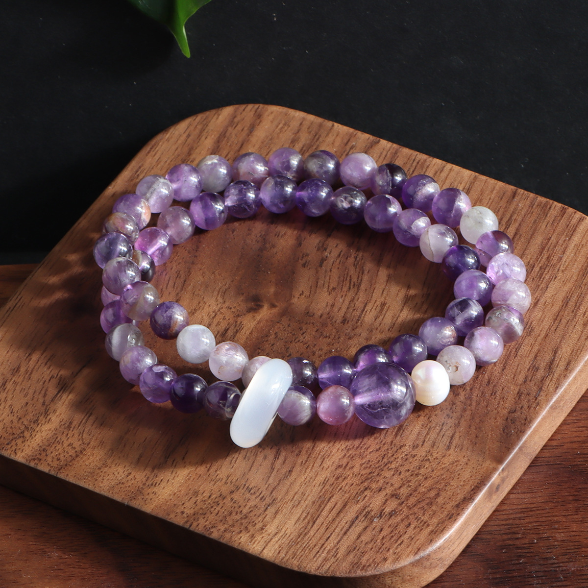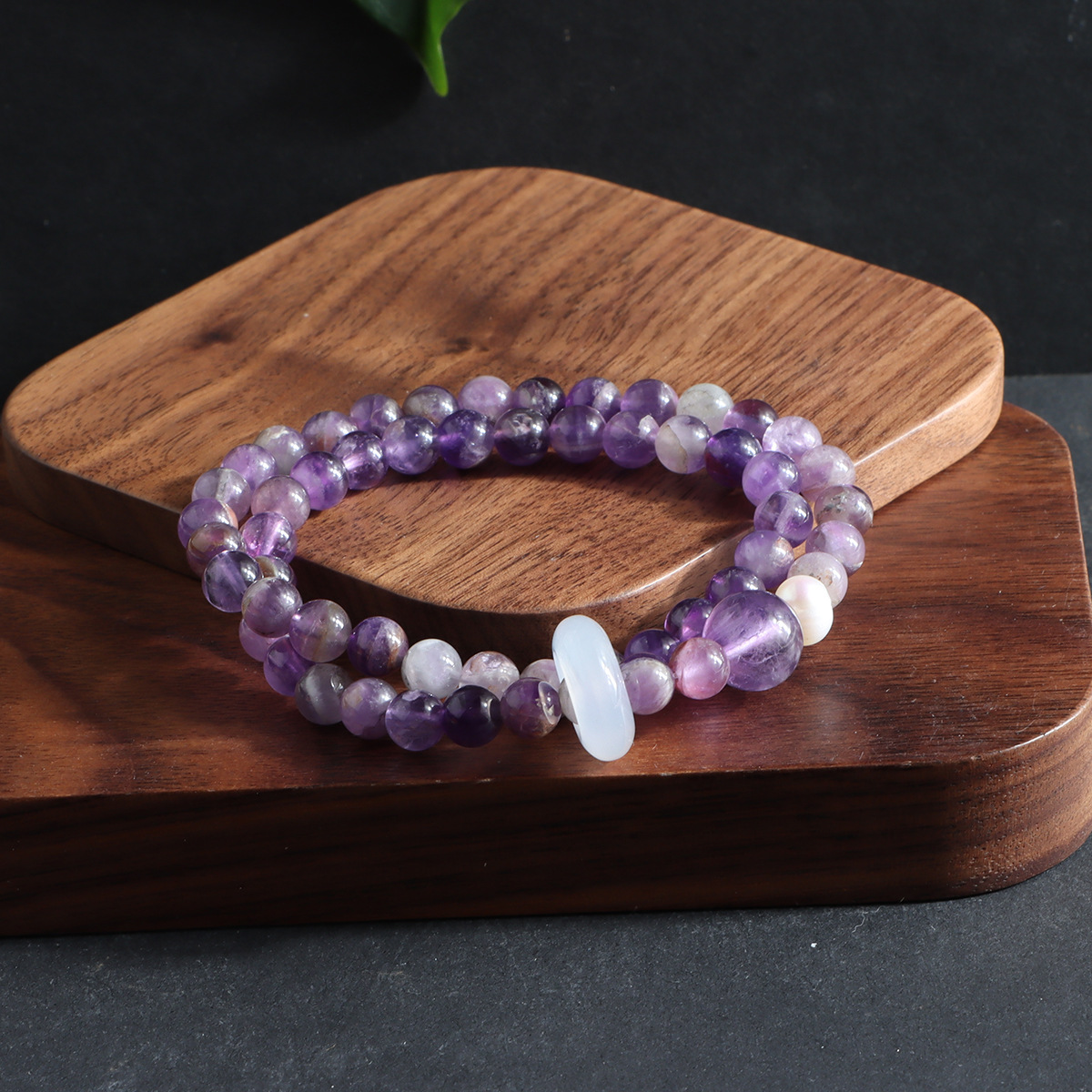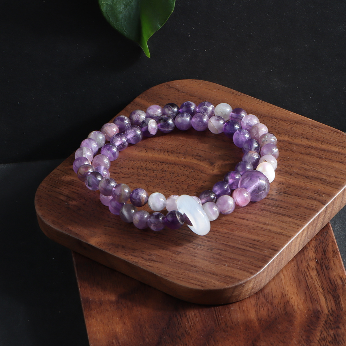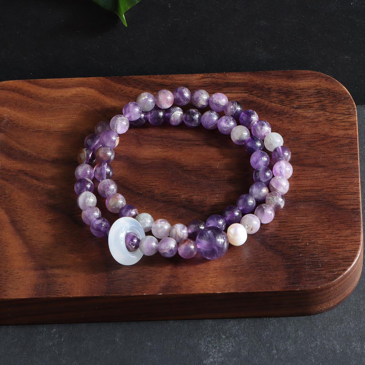 double circle milk-in-water amethyst flexible ring bracelet