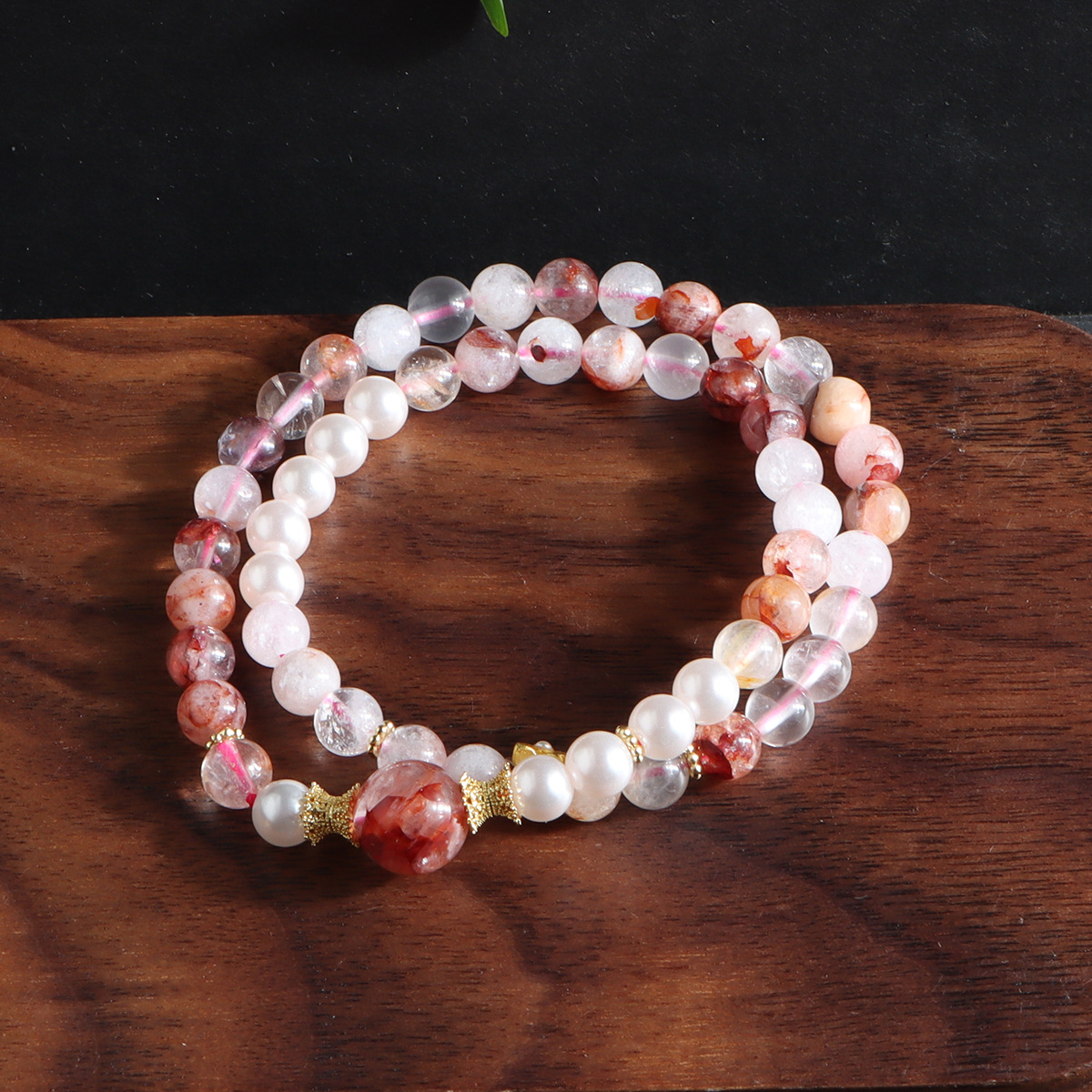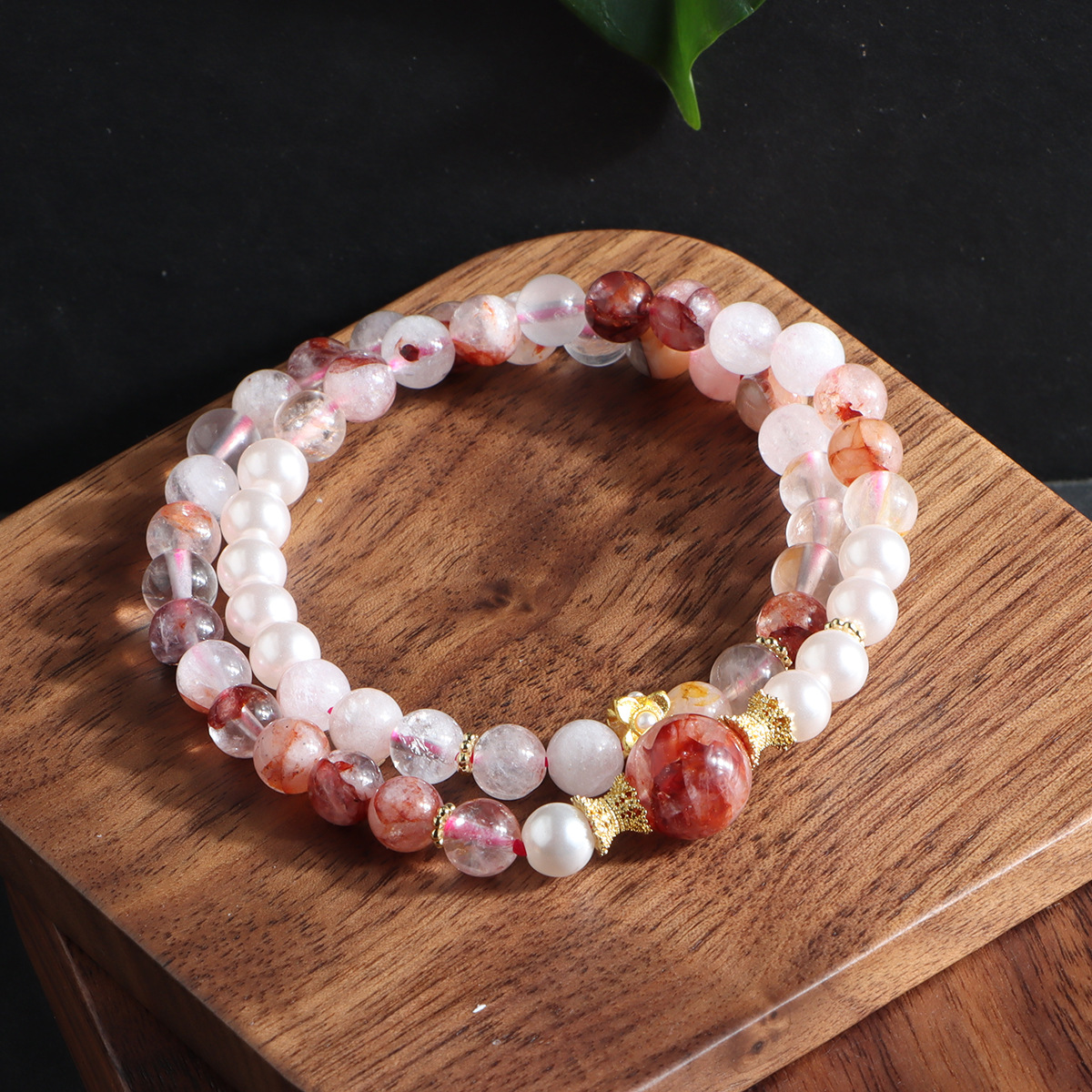 red sealant flower double ring bracelet