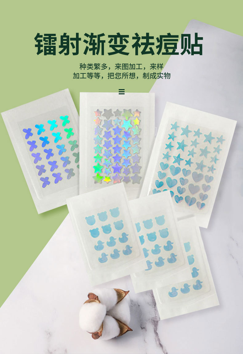Two materials: Water-based gel and PE material, (PE material with a thickness of 0.12mm, provides concealer and protection; water-based gel with a thickness of 0.25mm, absorbs pus and can be added with essential oils, which is more effective for treating acne) Please check the specifications before placing an order.