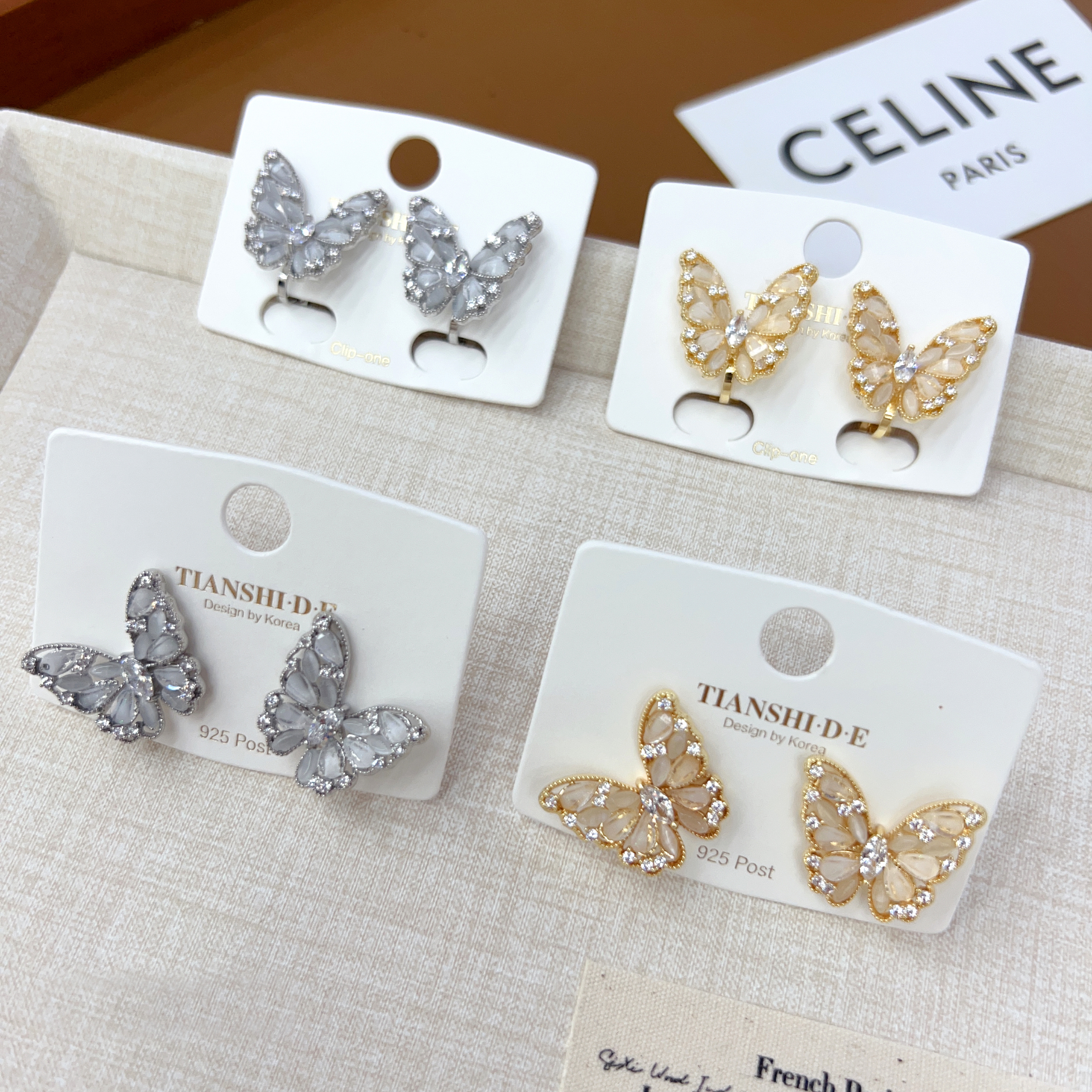 design diamond butterfly ornament accessories fashion all-match light luxury no piercing ear clip trendy earrings factory direct sales 中文版