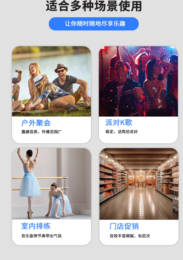 With BT/USB/TF card/FM, DC-5V charging (Type-c socket)